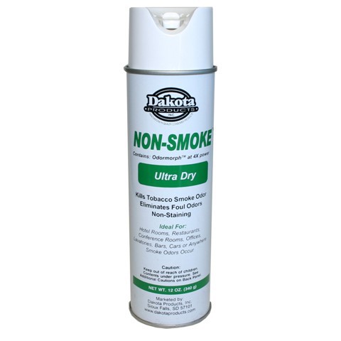 Dakota Non Smoke Ultra Dry Spray je silný odstraňovač zápachu, který je zapotřebí všude tam, kde je třeba rychle a účinně eliminovat silný zápach. Je určen pro aplikaci přímo do látky nebo do prostoru. Speciální složení s technologií Odomorph™ vyhledá a na molekulární úrovni zničí zápach z cigaret a další nežádoucí pachy a zanechá příjemnou vůni. Odstranění zápachu je 100% a po odeznění vůně se zápach nevrací, dokud nebude ošetřený prostor znovu vystaven kouři z cigaret. Ultra suchá receptura nezanechává skvrny na čalounění. Ideální pro použití v automobilech, pro restaurace a bary, hotely, obytné vozy, toalety atd. Přípravek je vysoce koncentrovaný.Návod k použití Non Smoke Ultra Dry Spray
