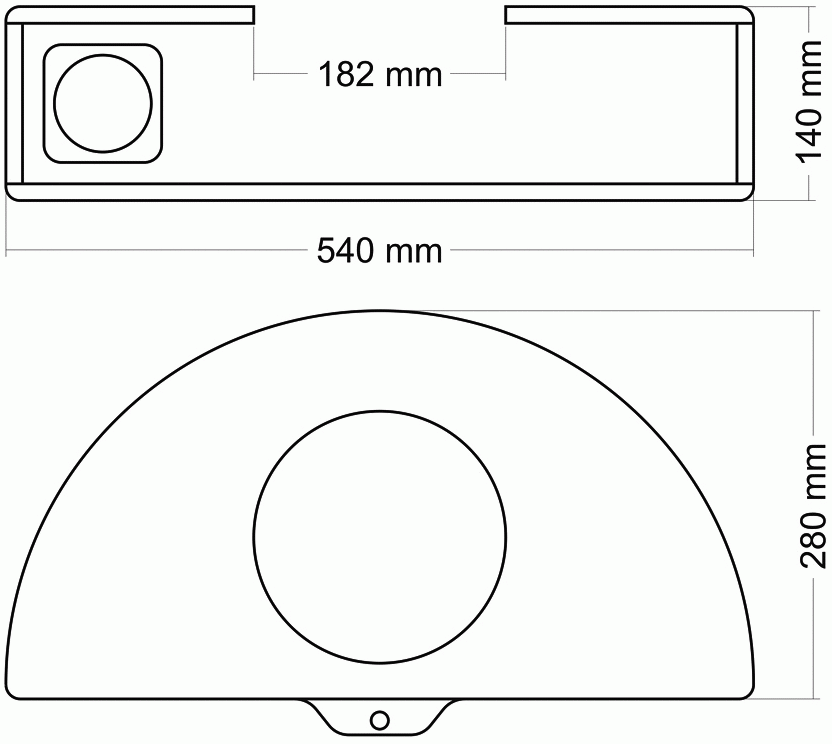 | Velikost otvoru pro subwooferOtvor pro danou průměrovou kategorii subwooferu. Pro 300mm subwoofer je díra nejčastěji cca. 28,3 cm. Montážní průměry subwooferů jsou obvykle normované čili není potřeba nic upravovat. | 20 cm (8") |