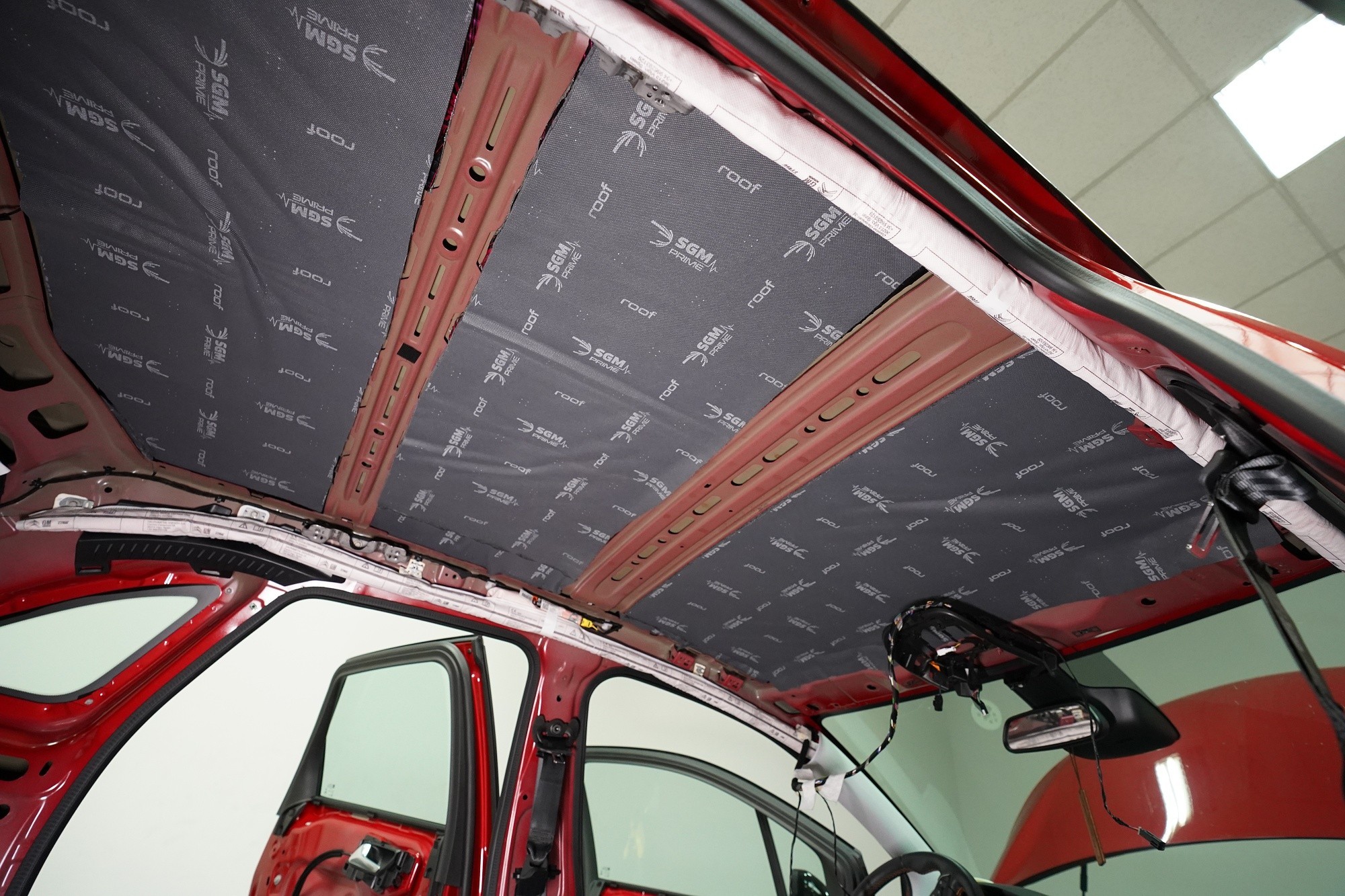 Ze stejného důvodu aplikujeme jako druhou vrstvu ultralehký zvukově izolační materiál SGM R-Tone, který kromě dostatečné izolace nabídne právě velmi nízkou hmotnost, která je prakticky zanedbatelná.