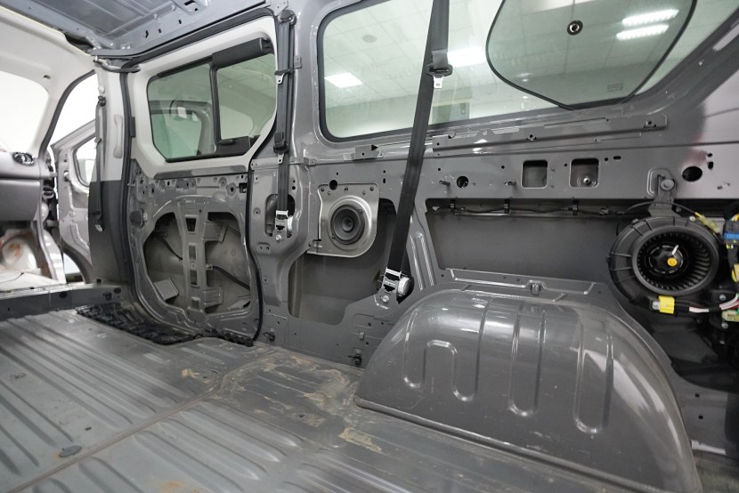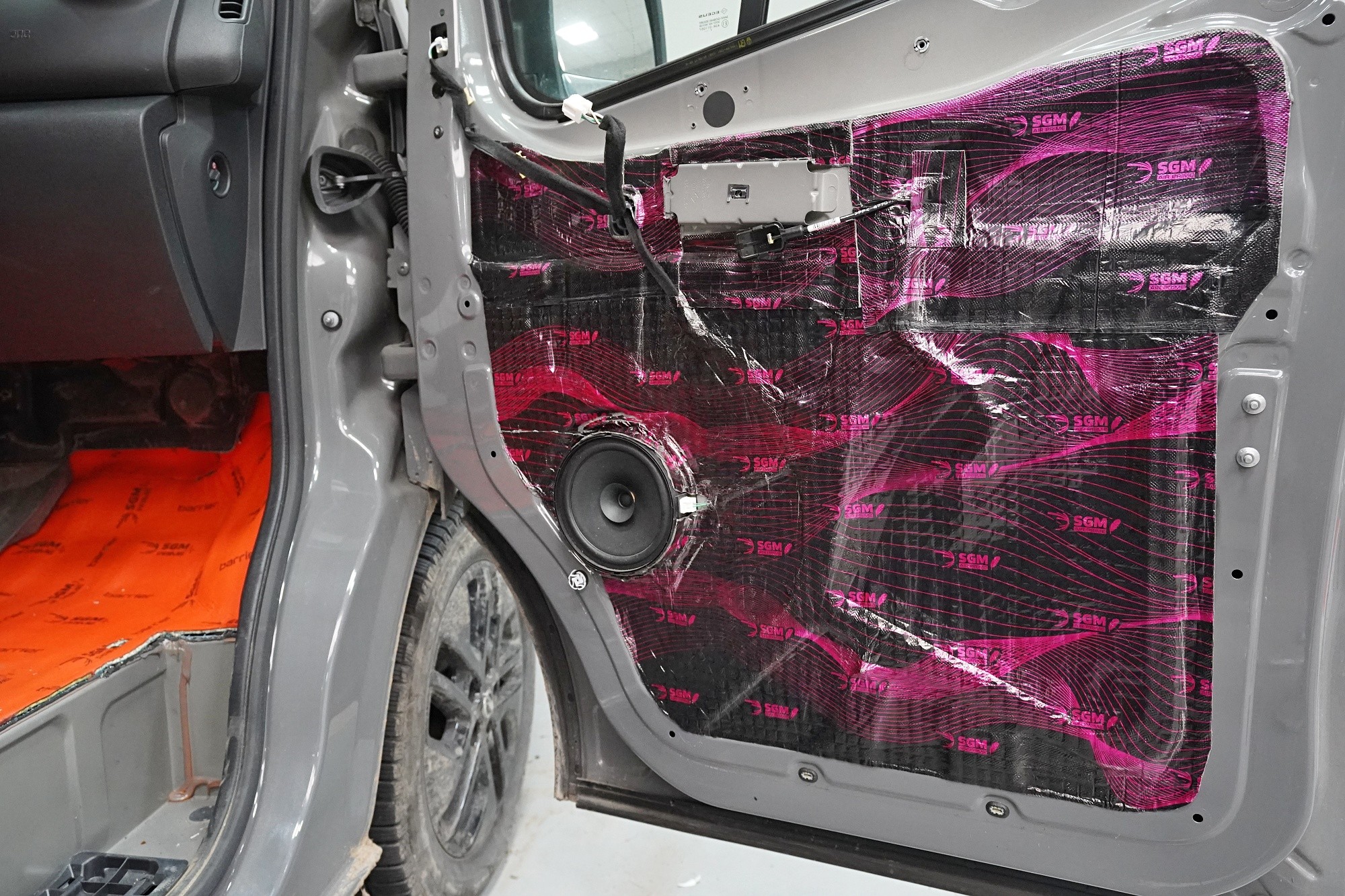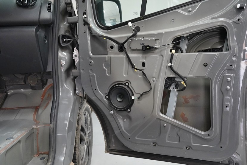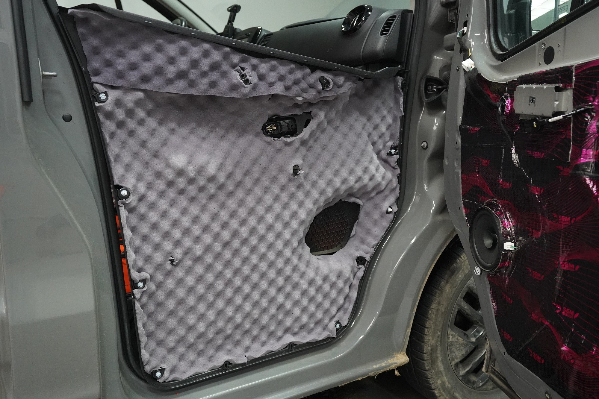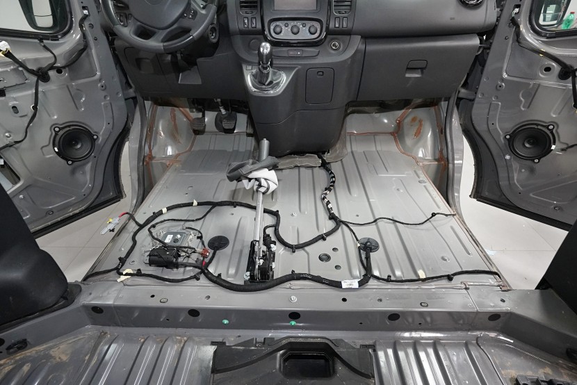 Kompletní odhlučnění vozu Opel Vivaro. U tohoto užitkového vozu platí to samé jako u podobných vozidel této kategorie typu Mercedes-Benz Viano nebo VW T6. Tovární zvuková izolace prakticky neexistuje a také Vivaro trpí na vysoký hluk v interiéru. Uživatelé si nejvíce stěžují na hluk od vozovky, motoru, podběhů předních i zadních kol a díky své konstrukci i na výrazný i aerodynamický hluk. Pro nejlepší výsledek jsme zvolili kompletní odhlučnění všech oblastí vozu a aplikovali jsme výhradně materiály SGM z nejvyšší modelové řady Prime. Konkrétně jsme se tedy zaměřili na přední, posuvné i páté dveře, podlahu, střechu, boky, přední i zadní podběhy, torpédo a kapotu. Odhlučňujeme samozřejmě i většinu plastových dílů v interiéru, abychom zabránili vrzání a skřípání plastů. Všechny zvolené materiály jsou i tepelně izolační a tento vůz je nově chráněn i před tepelnými ztrátami. Na odhlučnění pracují zároveň čtyři naši technici, kteří montáž zvládnou v rámci 1 pracovního dne.