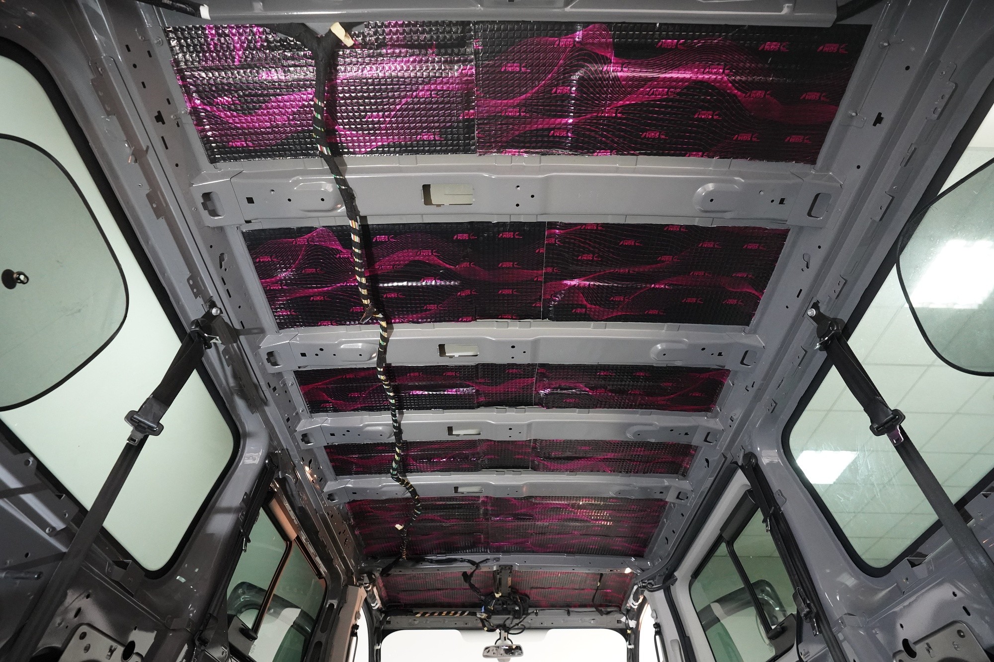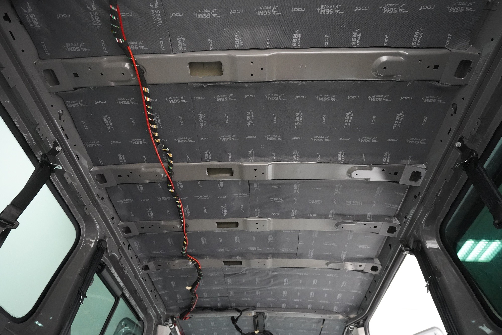U balíčku Expert odhlučňujeme dvěma vrstvami i střechu. Tou první je lehký antivibrační materiál SGM Air 2 o tloušťce 2 mm a MLF 0,34 jednotek. Air střechu zpevní, zamezí vibracím a například i hluku od dešťových kapek. Díky důkladnému rozválečkování a perfektní adhezi materiálu se nemusíte obávat odlepení během celé životnosti vozu.