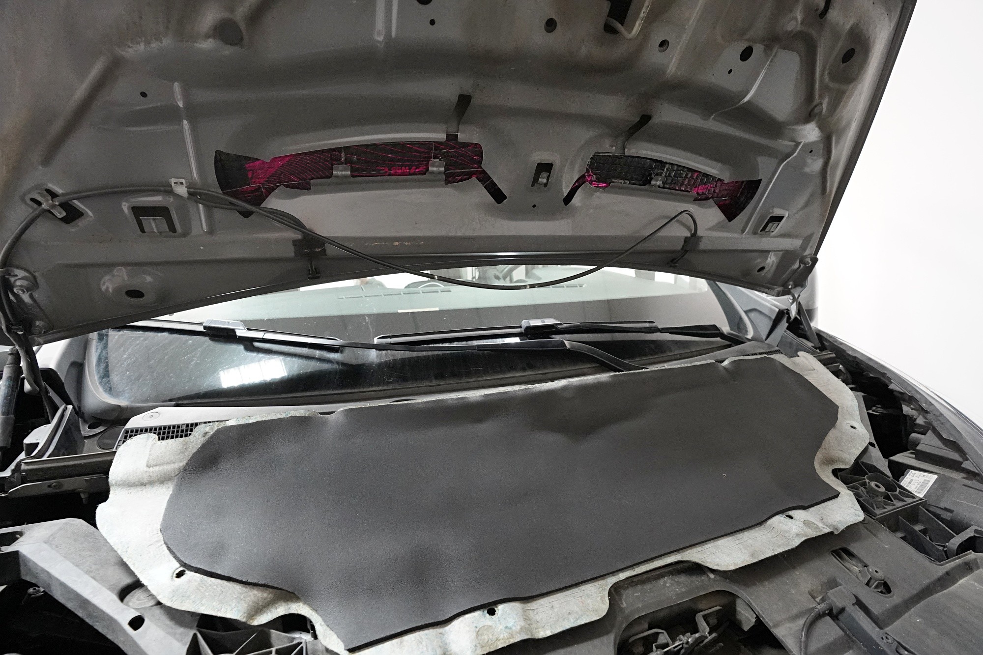 Nezapomínáme ani na kapotu, na kterou v první vrstvě aplikujeme lehký antivibrační materiál SGM Air 2. Tím kapotu zpevníme, zamezíme vibracím, které se přenáší do dalších částí vozu a zmizí i typický plechový zvuk při zavření kapoty. Na originální kryt kapoty následně aplikujeme zvukově i tepelně izolační materiál SGM R-Ton, který sníží hluk motoru a to při zachování původního vzhledu motorového prostoru.