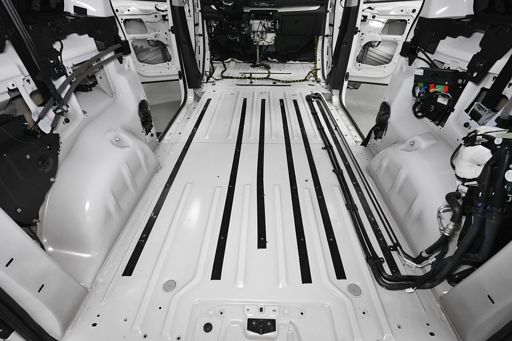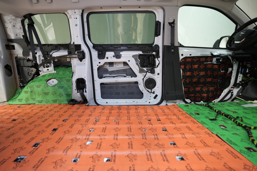 Opel Zafira Life je kompletně odstrojený a tovární zvuková izolace se ukazuje v plné své kráse. Respektive není co ukazovat, zcela holé plechy bez jakékoliv ochrany způsobují výrazné vibrace karoserie a jsou samozřejmě velmi náchylné na veškerý druh hluku. Vypadá to, jako by výrobce na zvukovou izolaci úplně zapomněl. Všechny plechy důkladně vyčistíme, odmastíme a pustíme se do práce.