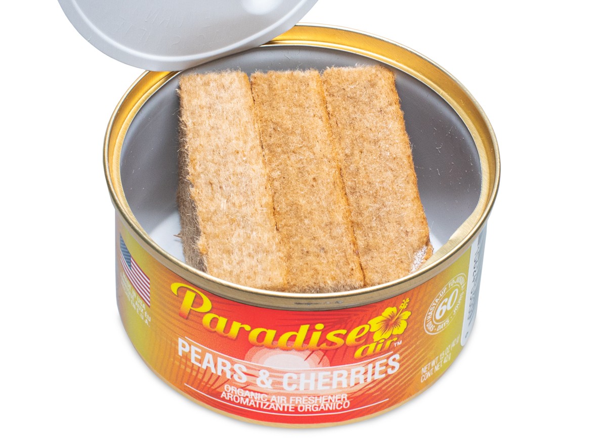 - Každá plechovka vůně Paradise Air Organic obsahuje tři bloky lisovaného lnu napuštěného parfémem.