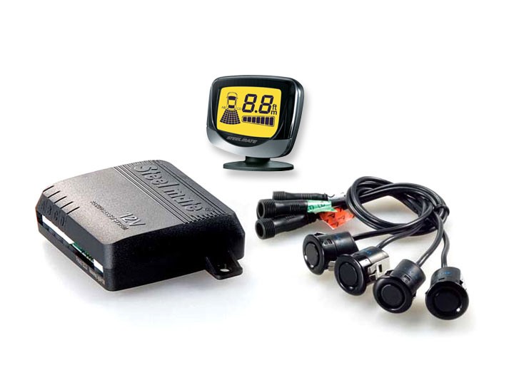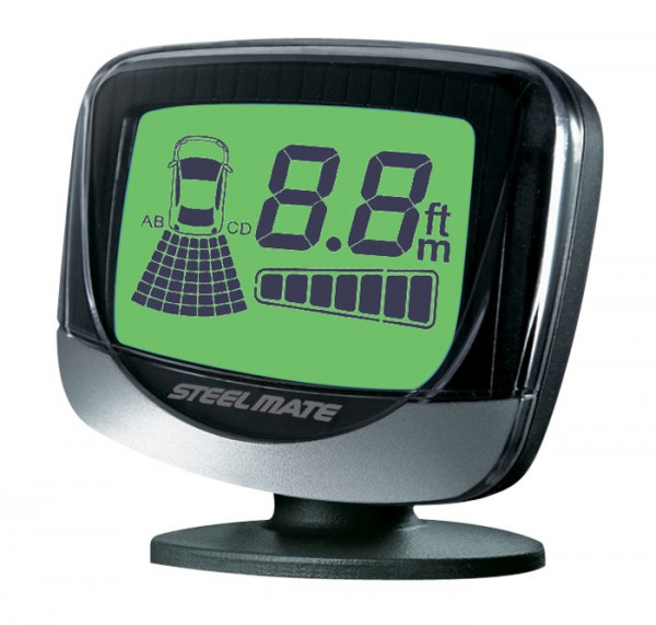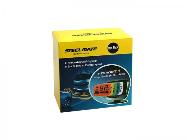 Parkovací asistent STEELMATE se 4 snímači a 5-barevným LCD displejem T1 s akustickou ahlasovou signalizací určen pro instalaci do zadního nárazníku vozidla