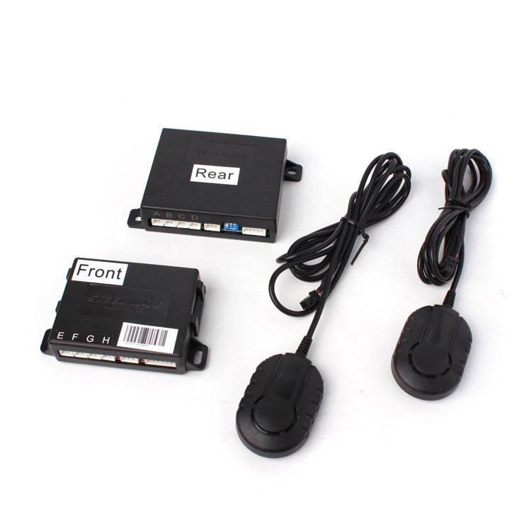 Osmisnímačový parkovací asistent Steelmate se zápustnými snímači 16 mm stříbrné barvy, dvěma bzučáky s přepínači nastavení hlasitosti a výšky tónu. Systém je určen pro instalaci do předního a zadního nárazníku vozidla. Nové řídící jednotky umožňují nastavení citlivosti snímačů a také nastavení zpoždění vypnutí předních snímačů ve dvou úrovních.