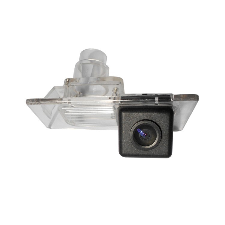 OEM barevná parkovací kamera pro instalaci do lampy pro osvětlení zadní registrační značky. Součástí kamery je místo pro umístění patice se žárovkou z původního světla pro registrační značku.