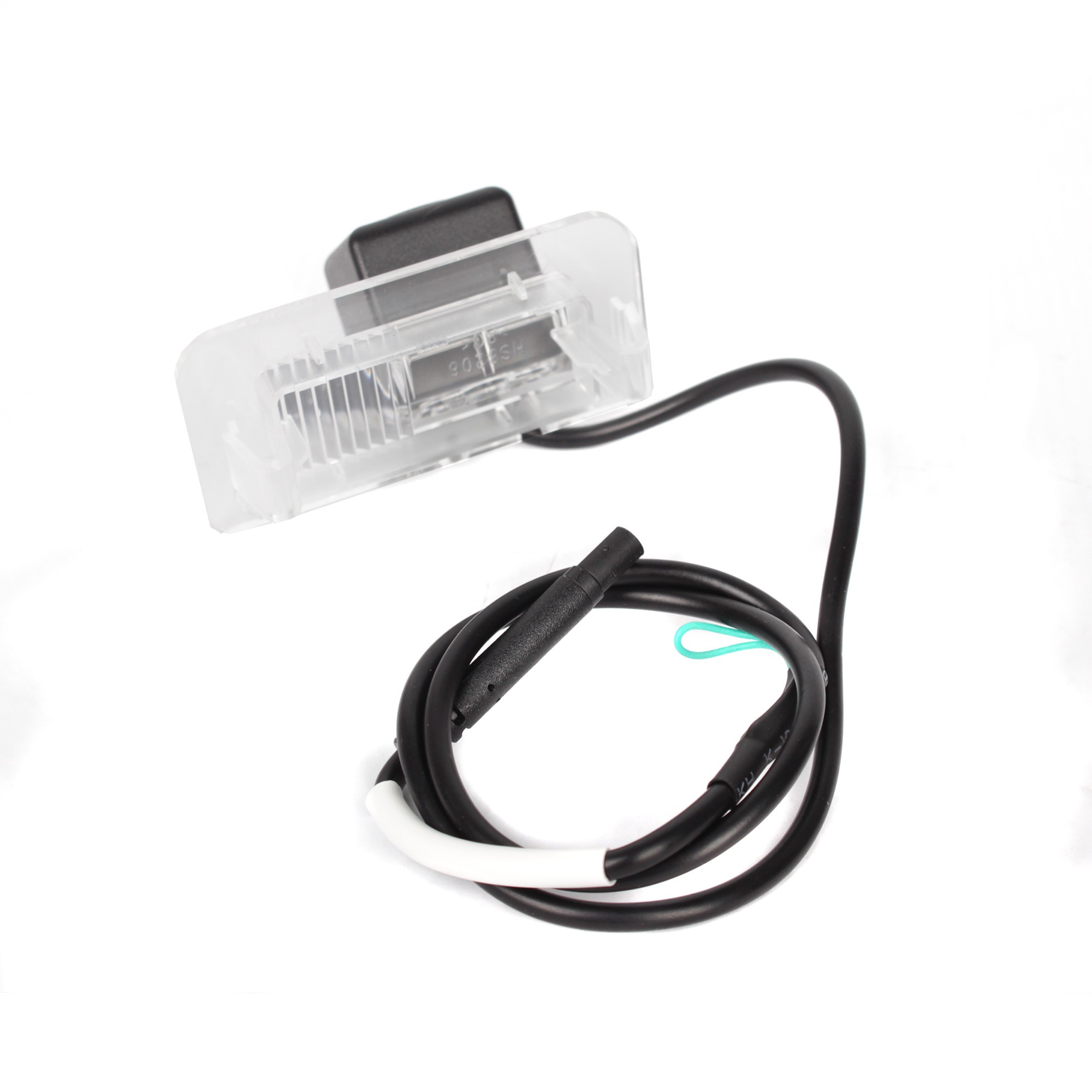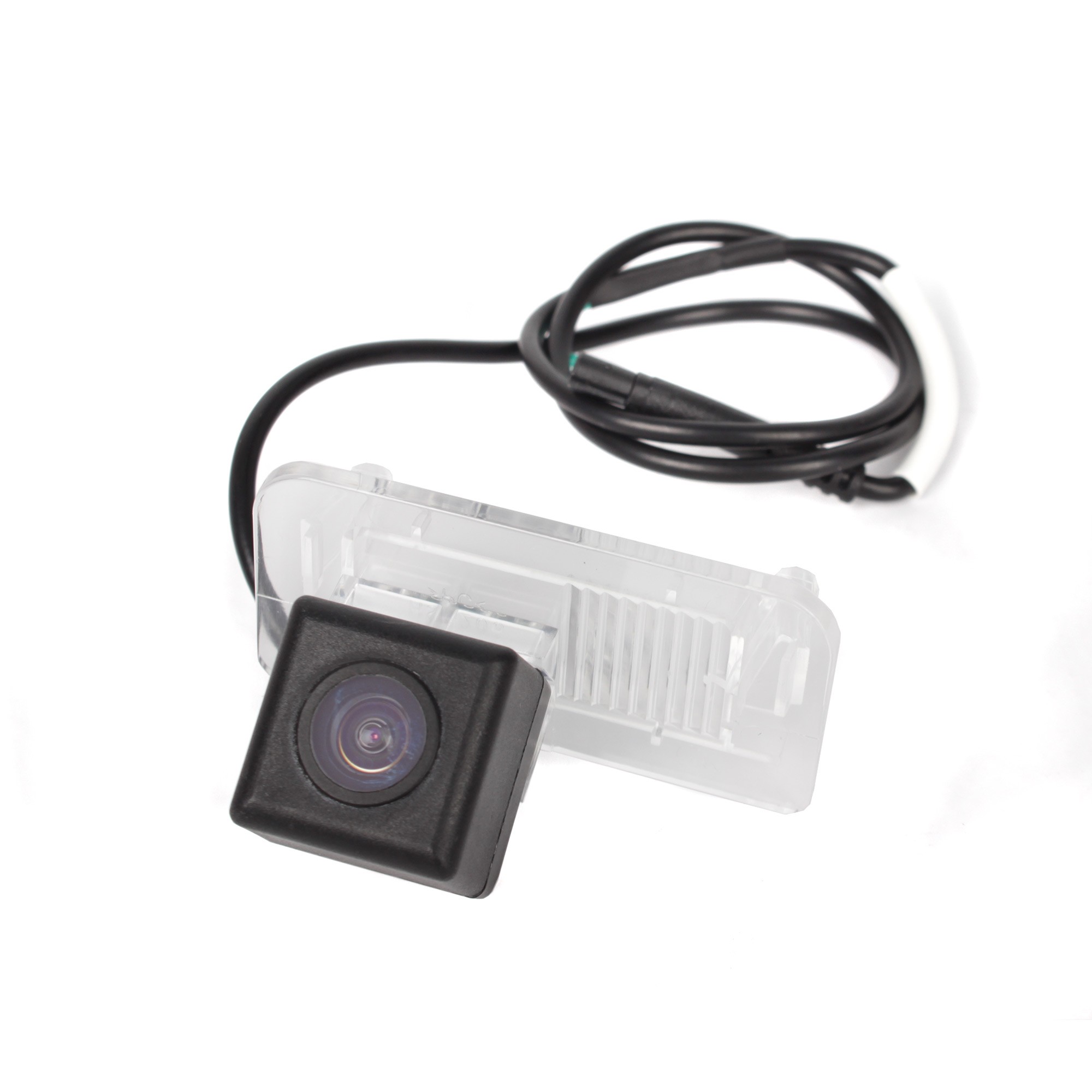 OEM barevná parkovací kamera pro instalaci do lampy pro osvětlení zadní registrační značky. Součástí kamery je místo pro umístění patice se žárovkou z původního světla pro registrační značku. Pro vozidla Mercedes B W246.