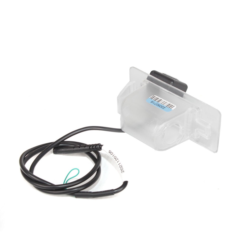 OEM barevná parkovací kamera pro instalaci na místo osvětlení zadní registrační značky. Součástí kamery je místo pro umístění patice se žárovkou z původního světla pro registrační značku.