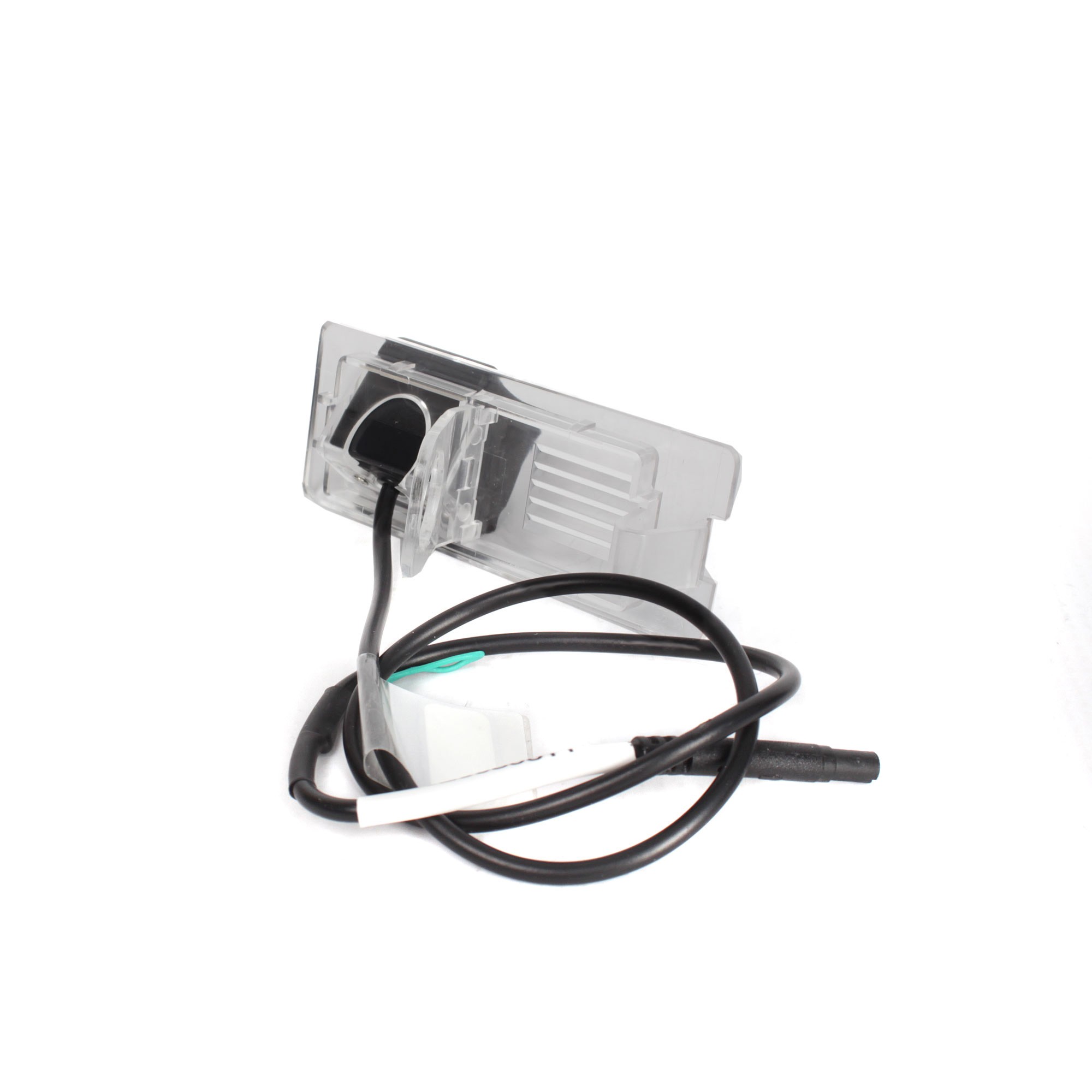 OEM barevná parkovací kamera pro instalaci na místo osvětlení zadní registrační značky. Součástí kamery je místo pro umístění patice se žárovkou z původního světla pro registrační značku.