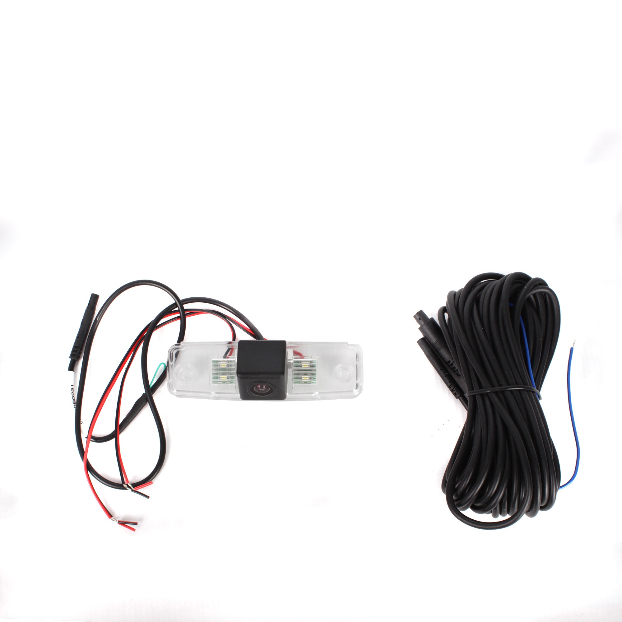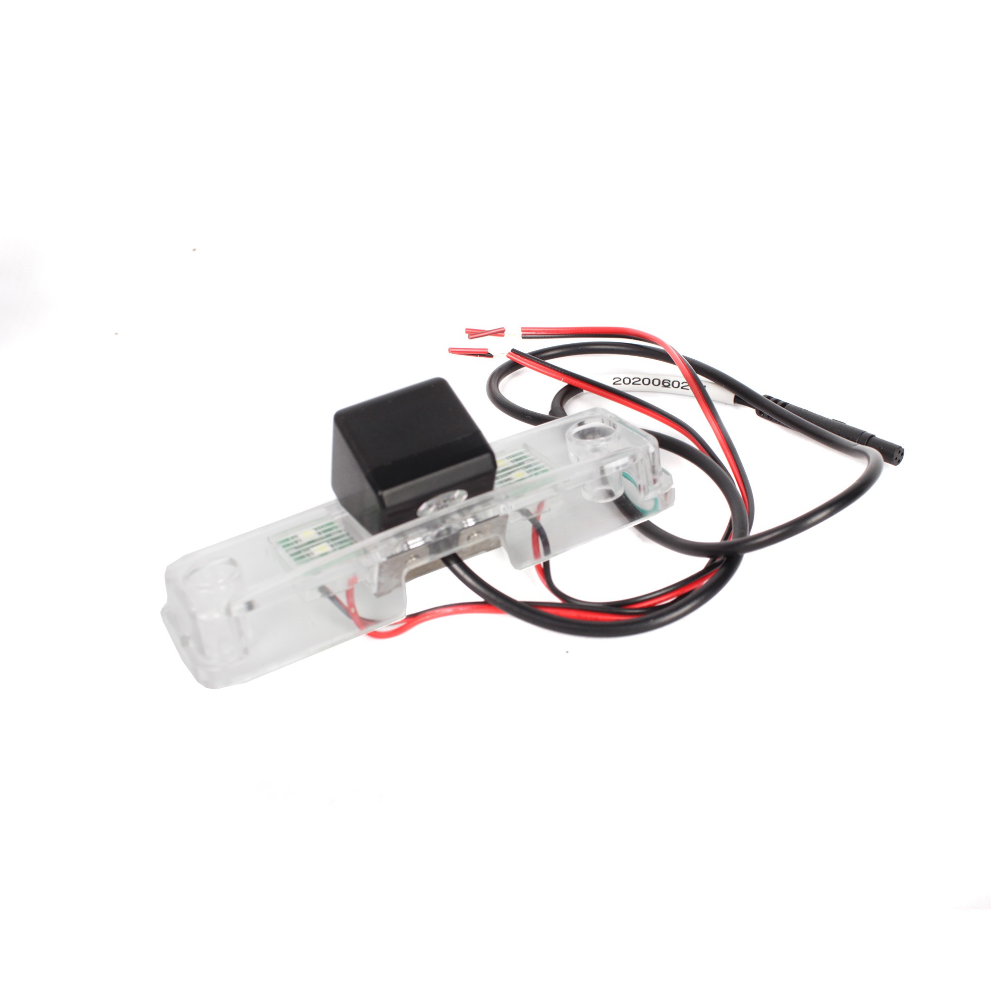 OEM barevná parkovací kamera pro instalaci do osvětlení zadní registrační značky. Součástí kamery je LED světlo, které nahrazuje původní osvětlení.
