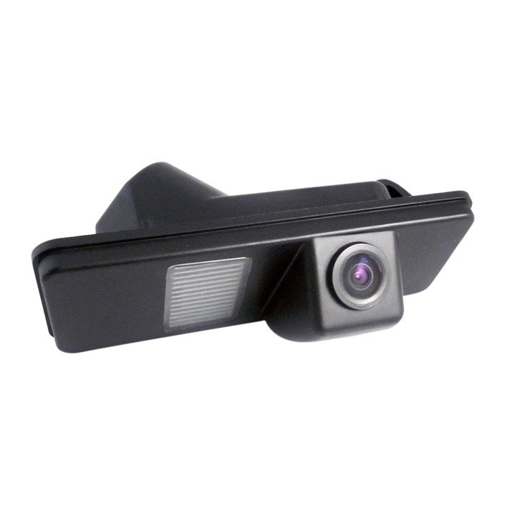 OEM barevná parkovací kamera pro instalaci na místo osvětlení zadní registrační značky. Součástí kamery je místo pro umístění patice se žárovkou z původního světla pro registrační značku.