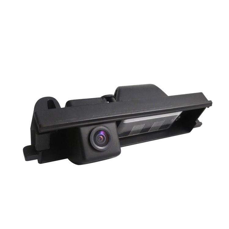 OEM barevná parkovací kamera pro instalaci na místo osvětlení zadní registrační značky. Součástí kamery je místo pro umístění patice se žárovkou z původního světla pro registrační značku.