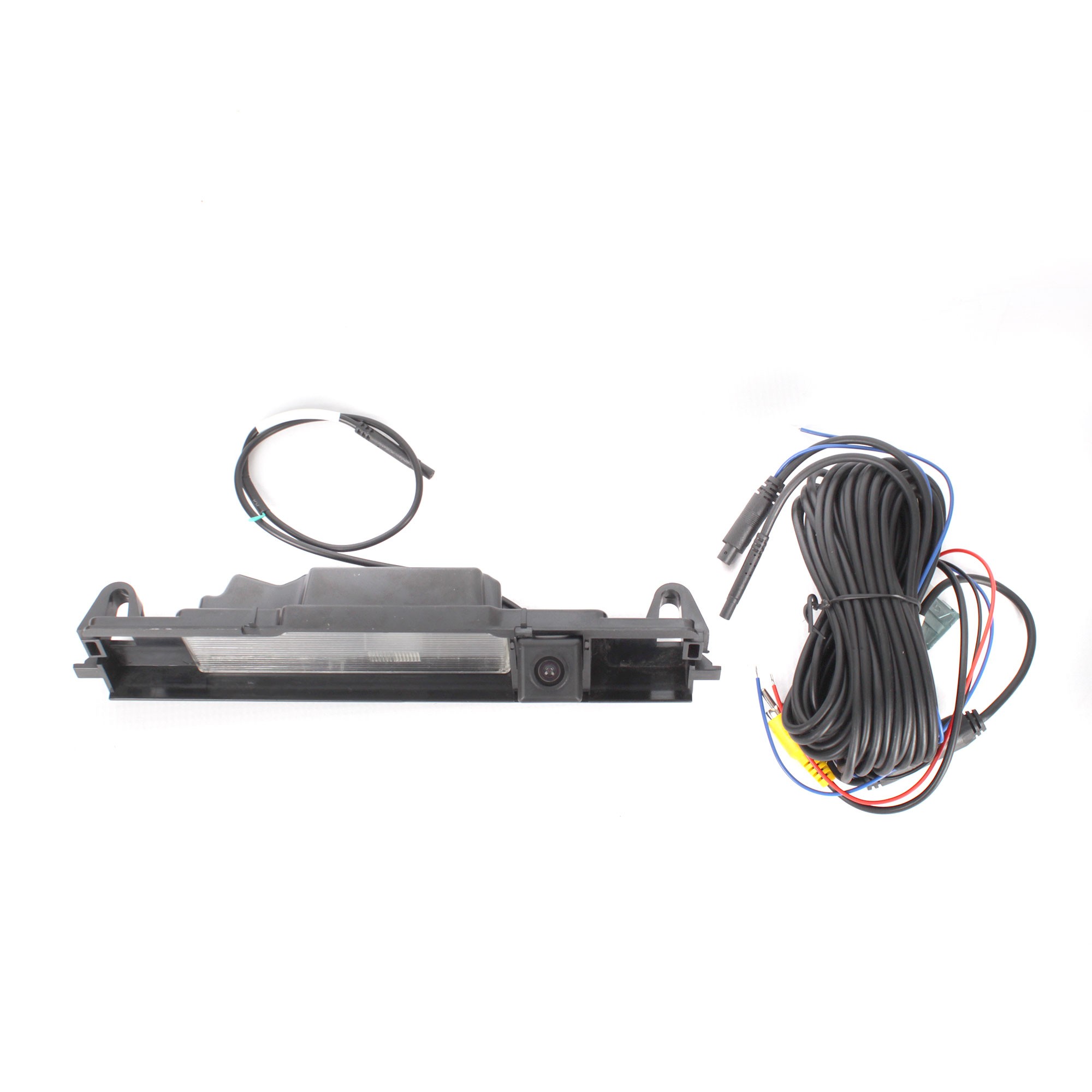 OEM barevná parkovací kamera pro instalaci na místo osvětlení zadní registrační značky. Součástí kamery je místo pro umístění patice se žárovkou z původního světla pro registrační značku.