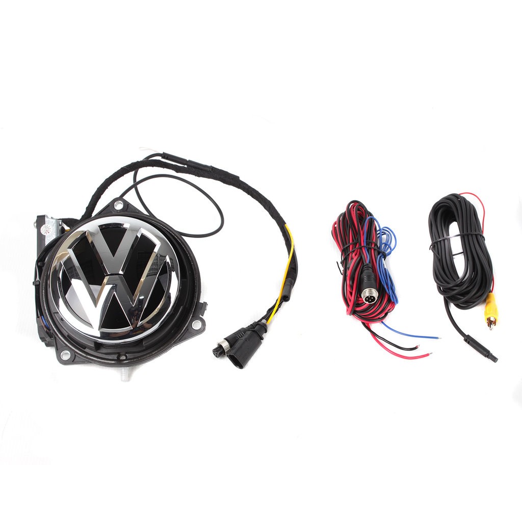 OEM barevná parkovací kamera integrovaná ve "VW" logu umístěném na pátých dveřích. Po zařazení zpátečky se kamera automaticky vyklopí, původní funkce otevírání dveří logem je zachována. Pro vozidla VW Passat B8, Arteon.