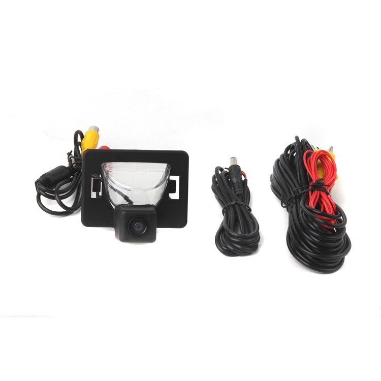 OEM barevná parkovací kamera pro instalaci do lampy pro osvětlení zadní registrační značky. Součástí kamery je místo pro umístění patice se žárovkou z původního světla pro registrační značku.