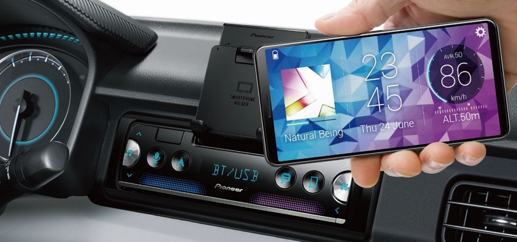 Autorádio Pioneer SPH-10BT s držákem pro chytrý telefon je navrženo tak, aby poskytovalo bezpečnější a snadnější přístup k vašim aplikacím pro smartphony. Obsahuje totiž čtyři speciální tlačítka pro rychlý přístup k oblíbeným aplikacím. Bezpečnější řízení podporují také funkce, jako je rozpoznávání hlasu. Když k tomu připočteme (při připojení k nové aplikaci Pioneer Smart Sync) možnosti nejrůznějších osobních nastavení, ve finále se dostaneme k vynikajícímu zvuku. Váš chytrý telefon stačí jednoduše připojit (ať už bezdrátově nebo kabelem) k integrovanému robustnímu držáku, smartphone spárovat pomocí bezplatné aplikace Pioneer Smart Sync a okamžitě si můžete začít užívat chytřejší způsob ovládání a zážitek z jízdy. Modelem SPH-10BT představuje společnost Pioneer dynamický vývoj v možnostech propojení chytrých telefonů a zábavy v autě - nejmodernější konektivitu pro smartphony, lepší dostupnost, přehratelnost obsahu a kvalitu zvuku. Perfektní řešení pro aktivní životní styl!