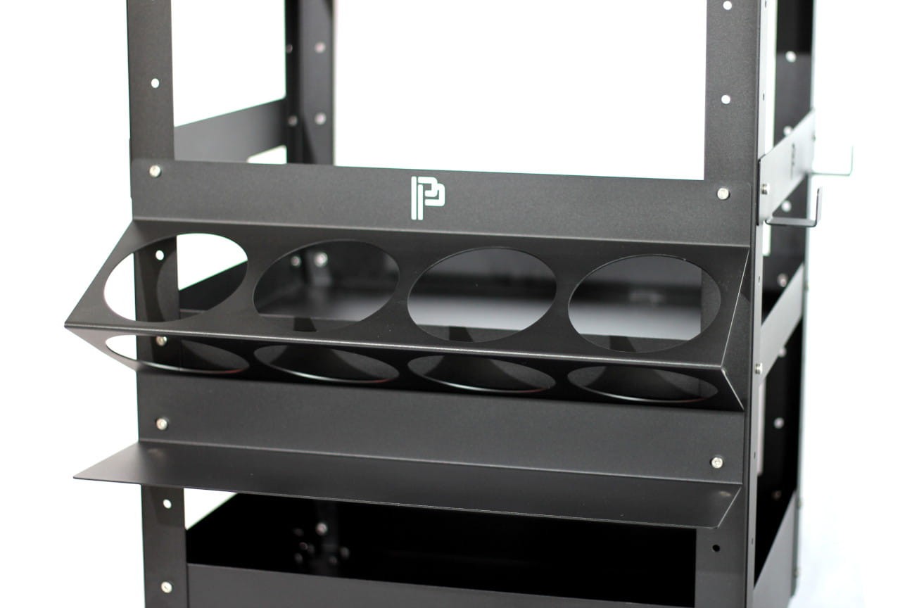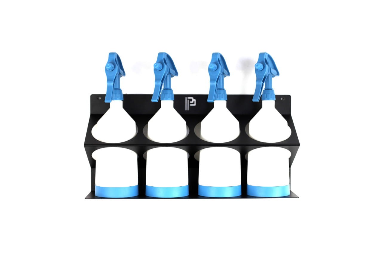 Poka Premium Bottle Holder Up to 1,5 l je profesionální držák lahví přizpůsobený jak pro upevnění na zeď, tak i k detailingovým vozíkům tohoto výrobce. Držák lahví je přizpůsoben pro skladování až 4 kusů lahví o objemu do 1,5 l. Svou konstrukcí je perfektní nejen pro fixní upevnění na zeď, ale také jako modulární díl pro rozšíření funkčnosti detailingových vozíků Poka Premium (v tomto případě je možné využít modulární nohy s mnoha otvory). Díky čtyřem upevňovacím otvorům je držák odolný i vůči těžkým lahvím s lešticími pastami. Je vyroben z vysoce kvalitní, přesně řezané a ohnuté oceli, která je lakována práškovou povrchovou úpravou pro co největší odolnost proti oxidaci.