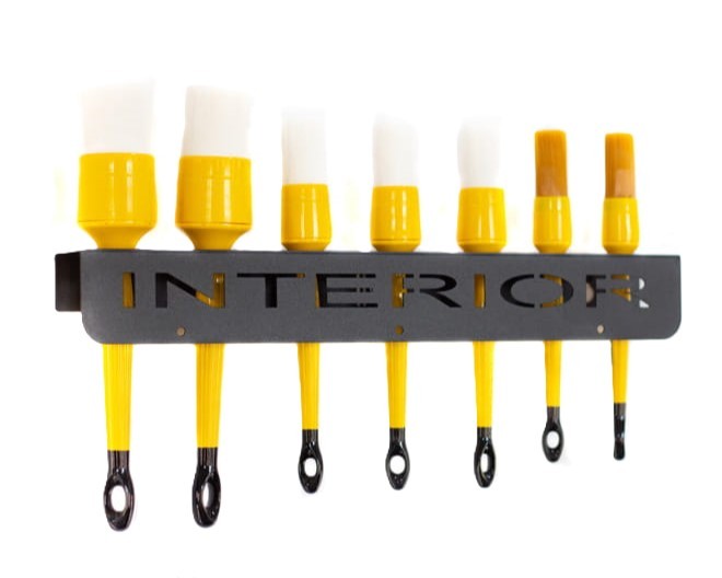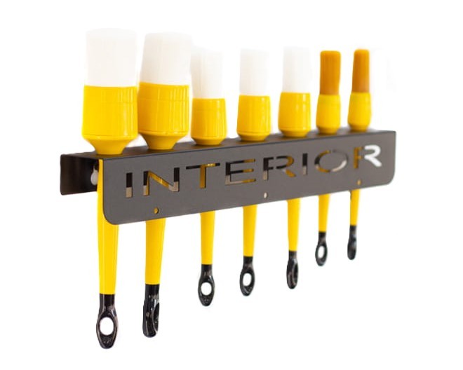 Poka Premium Holder for brush and car care accessories - 40 cm je univerzální masivní nástěnný držák pro 7 štětců na detailing automobilu, který je praktický a funkční s označením INTERIOR. Otvory jsou vhodné pro většinu dostupných štětců na trhu. Montážní otvory pro přišroubování na zeď jsou umístěné v zadní části držáku, díky tomu zaručují naprostou stabilitu. Držák je vyroben z kvalitního kovu, který je lakován práškovou barvou, která chrání proti oxidaci. Z čelní strany je efektní řezané logo Poka Premium.