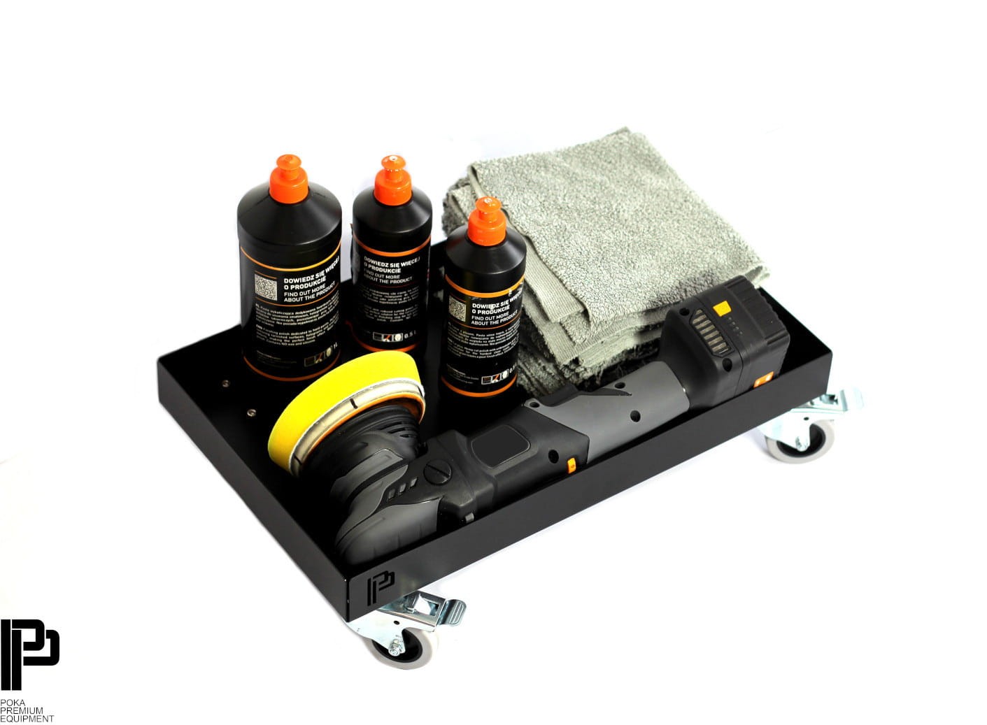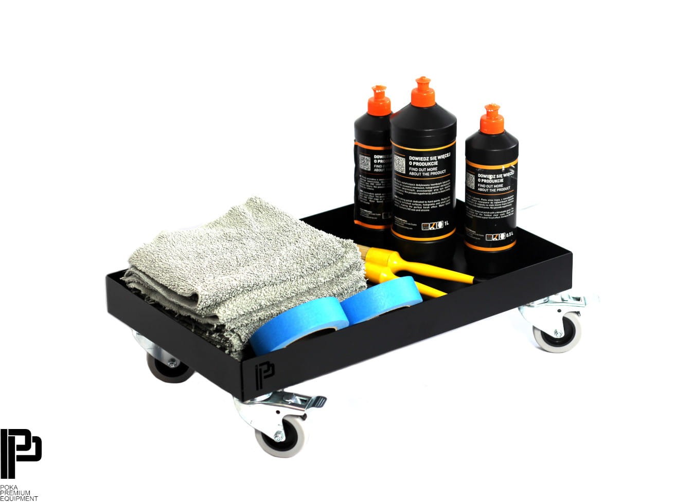 Vysoce kvalitní, nízký kovový vozík pro pohodlnou přepravu pracovního příslušenství při každodenních činnostech v dílně či garáži. Je vyroben z nejkvalitnější oceli, pokryté silnou vrstvou zinku pro ochranu proti rzi. Vozík je z obou stran nalakován kvalitní práškovou barvou s jemnější strukturou, která poskytuje ochranu proti poškrábání a vyblednutí. Takto zajištěný vozík vám bude sloužit mnoho let i v těch nejtěžších podmínkách. Precizně vyrobený a díky pokročilé CNC technologii nemá ostré hrany a konce. Použití vozíku je bezpečné. Vysoká otočná kolečka z pryže umožňují volný pohyb vozíku i na nerovném povrchu. Dvě kolečka mají brzdu.