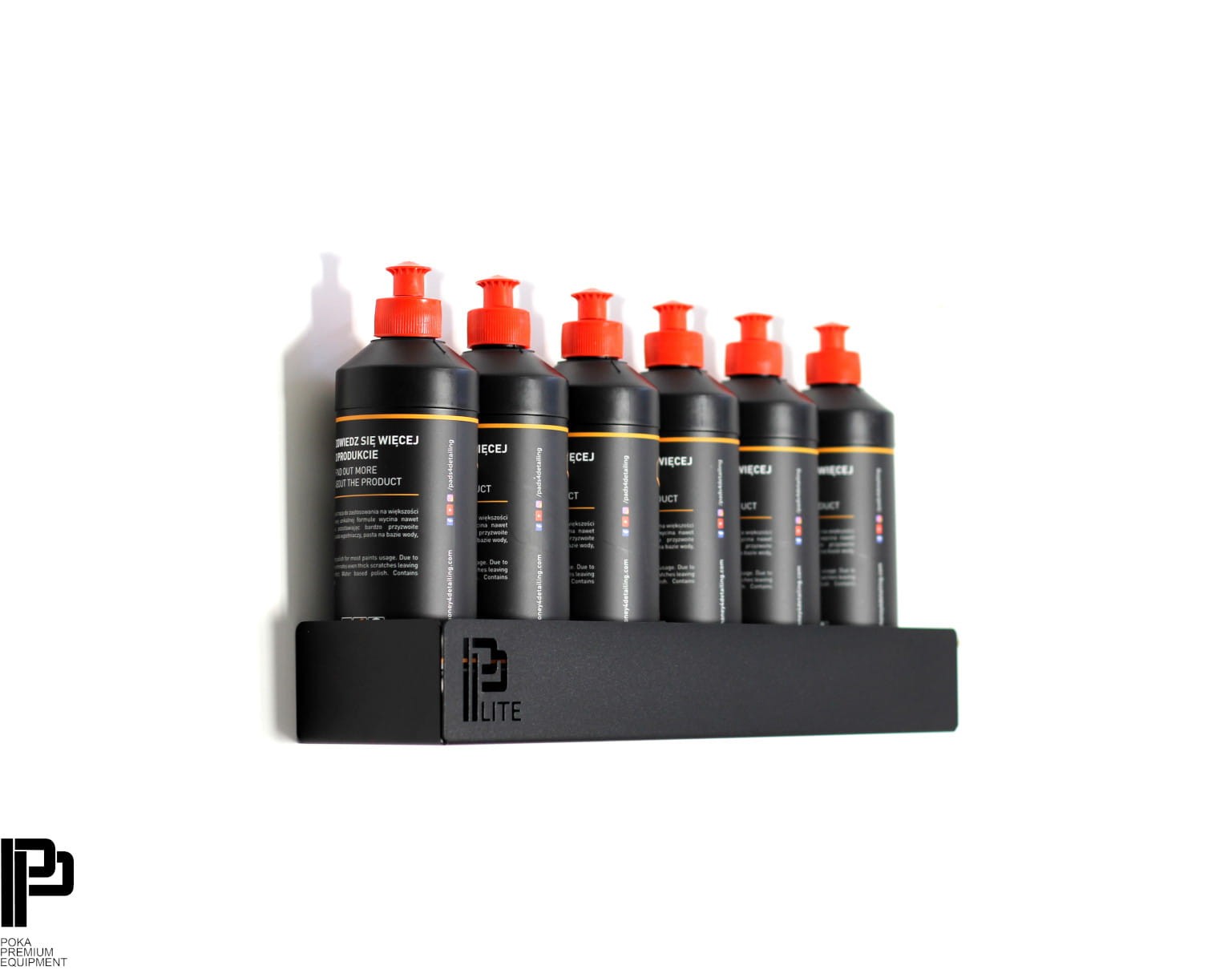 Poka Premium LITE je produktová řada, která přináší nejvyšší kvalitu zpracování, moderní design a dlouhou životnost za atraktivnější cenu. Využívá stejnou konstrukční ocel a odolný práškový lak jako špičkové modely POKA Premium, avšak bez pozinkované vrstvy – díky tomu nabízí dokonalý poměr ceny a výkonu. Tento kovový držák/polička pro skladování lešticích past je ideálním řešením pro každé detailingové studio, dílnu či garáž, kde pomáhá udržet pracovní prostor přehledný a všechny produkty na dosah ruky. Polička je vyrobena z 1 mm silného ocelového plechu, oboustranně lakována vysoce odolnou práškovou barvou s jemnou strukturou, která chrání povrch proti poškrábání, vyblednutí a korozi. Díky preciznímu CNC zpracování nemá žádné ostré hrany a je zcela bezpečná při každodenním používání. Konstrukce je navržena tak, aby zvládla zatížení až 5 kg a byla kompatibilní s většinou lešticích past o objemu 250 ml až 1 l dostupných na trhu.
