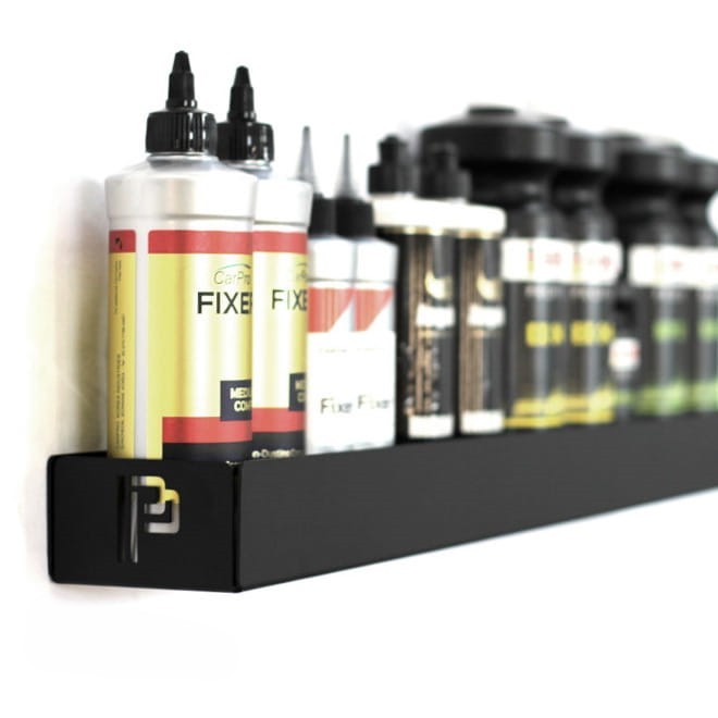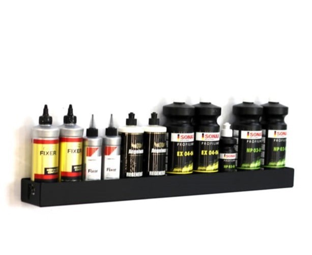 Praktická a funkční police pro uložení lešticích past, různých čističů, impregnací či jakýchkoliv detailingových přípravků. Hloubka 86 mm umožňuje uložení i větších balení. Montážní otvory pro přišroubování na zeď jsou umístěny v zadní části police, díky tomu zaručují naprostou stabilitu. Kvalitní kov je lakován práškovou barvou, která chrání proti oxidaci. Na boční straně je umístěno efektní logo Poka Premium.