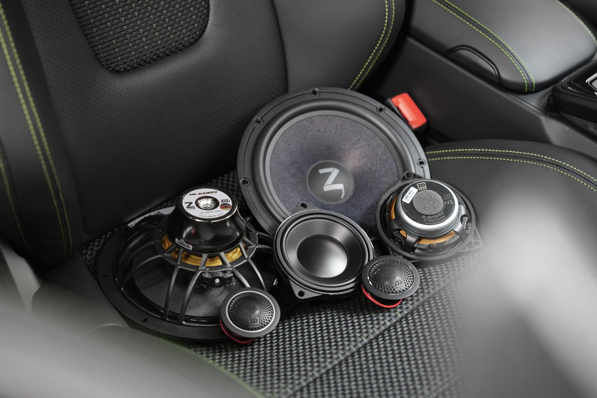 Na fotografii vidíte třípásmový reproduktorový systém složený ze špičkových komponentů uznávaných výrobců Morel a Gladen. Konkrétně špičkové výškové reproduktory Morel Elate Carbon, středové reproduktory z řady Integration Reference, která je navržena s důrazem na bezproblémovou OEM instalaci. Tyto komponenty je možné jednoduše osadit na původní tovární pozice bez nutnosti úprav, a přitom získat zvuk, který je pro Morel typický – detailní, přirozený a hudebně naprosto věrný. A nakonec středobasy Gladen z nejvyšší modelové řady Zeta, které přináší dynamiku a výkon, ale díky kompaktnímu neodymovému magnetu nezabírají více prostoru než běžné měniče. Kombinace moderní konstrukce a papírové membrány jim umožňuje hrát s velkou razancí, rychlostí a přirozeností, což je pro věrnou reprodukci basového pásma zásadní.