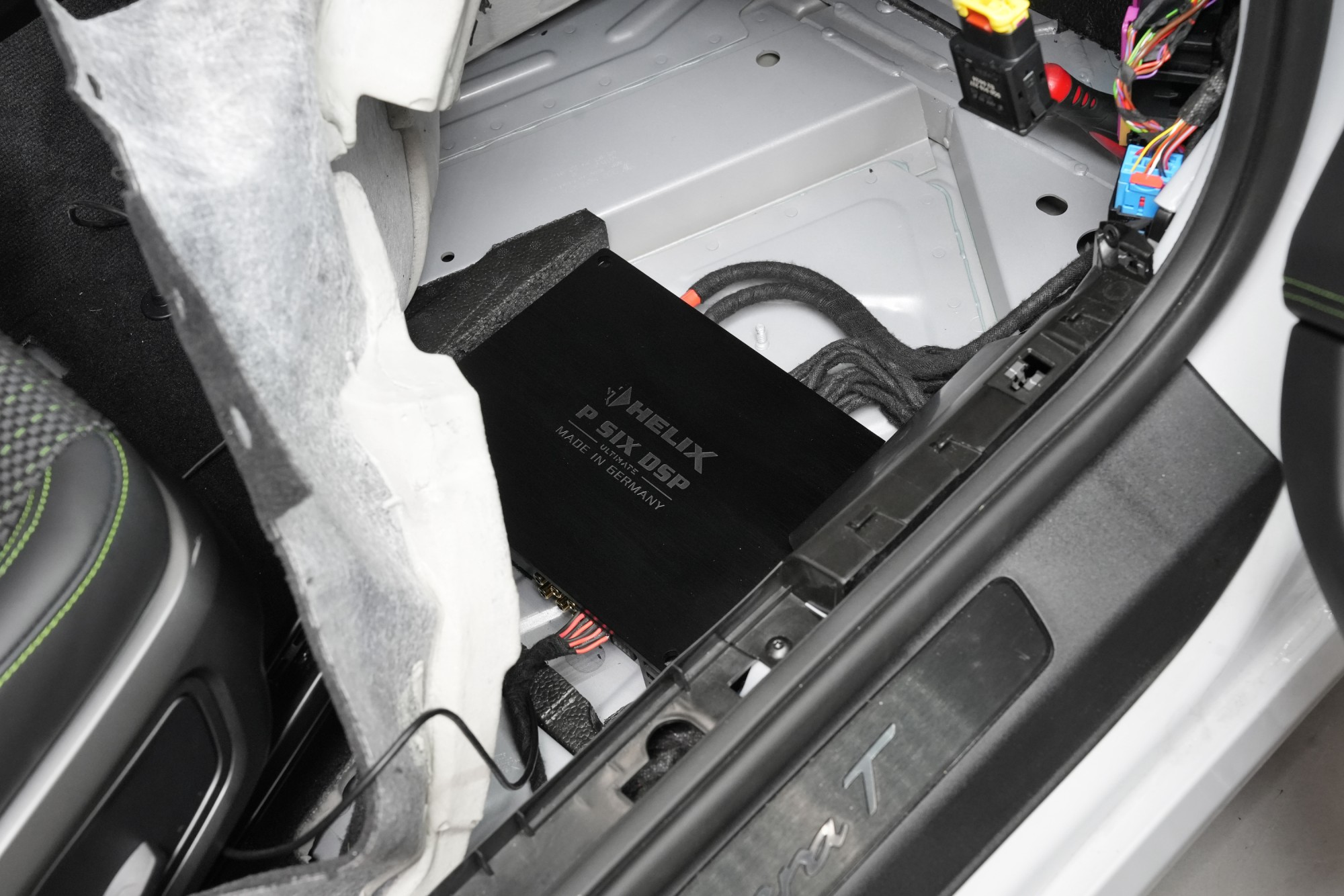 Pro tuto montáž jsme zvolili třípásmový systém složený z výškových a středových reproduktorů Morel, které jsme doplnili o středobasy Gladen Zeta, vše osazené na původní tovární pozice. O výkon se stará 6kanálový zesilovač Helix P Six DSP Ultimate s integrovaným DSP procesorem, jenž nabízí vysoký výkon, kompaktní šasi a propracovaný software pro přesné doladění zvuku podle akustiky vozu.