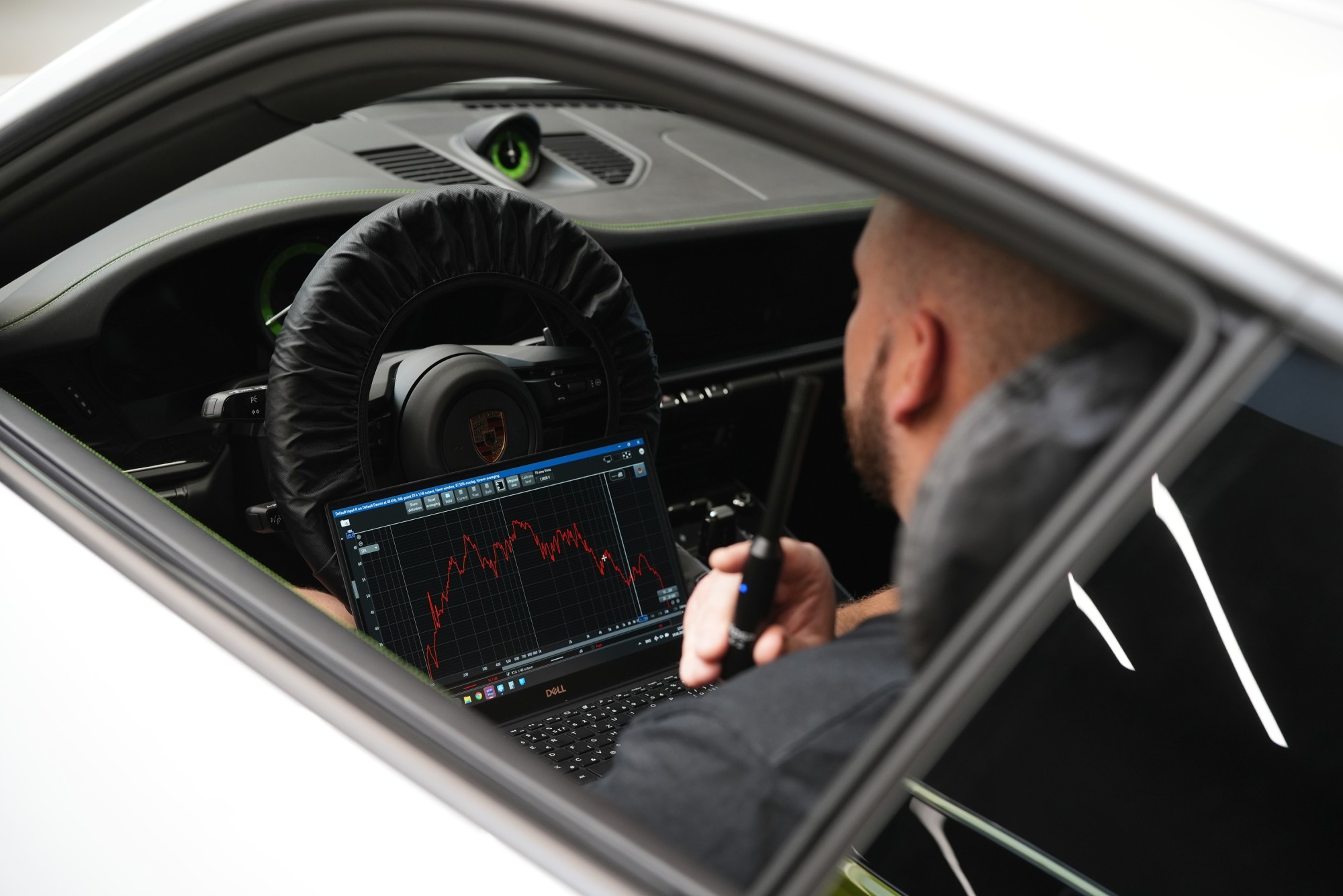 Finální ladění jsme provedli pomocí měření frekvenční odezvy reproduktorů a nastavení výsledků v softwaru DSP procesoru, abychom docílili vyrovnaného, prostorově věrného a dynamického zvuku, který plně respektuje akustiku interiéru Porsche 911. Výsledkem je ozvučení, které se kvalitou i energií dokonale doplňuje s celkovým charakterem tohoto vozu a umocňuje zážitek z každé jízdy.