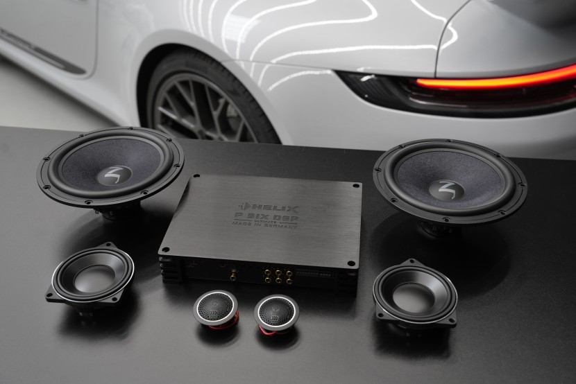 Do modelů Porsche využíváme nejčastěji osvědčenou kombinaci výškových a středových reproduktorů Morel, které patří mezi absolutní špičku z hlediska detailu a věrnosti zvuku. Tyto měniče jsme doplnili o výkonné 200 mm středobasy Gladen z nejvyšší řady Zeta. Výsledkem je třípásmový systém, který zaujme nejen svou kvalitou reprodukce, ale i vynikající dynamikou, jež skvěle odpovídá sportovnímu duchu tohoto vozu. O dostatek výkonu se stará zesilovač Helix s integrovaným DSP procesorem, diskrétně ukrytý v podlahové části.