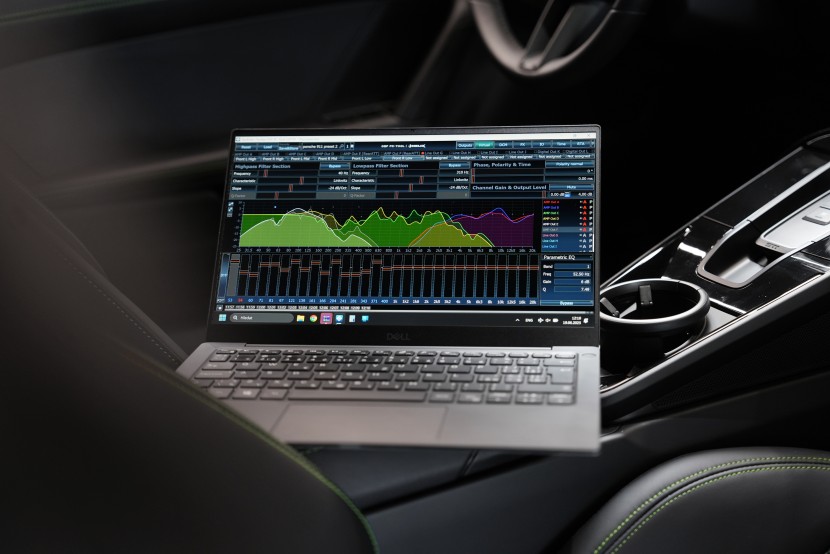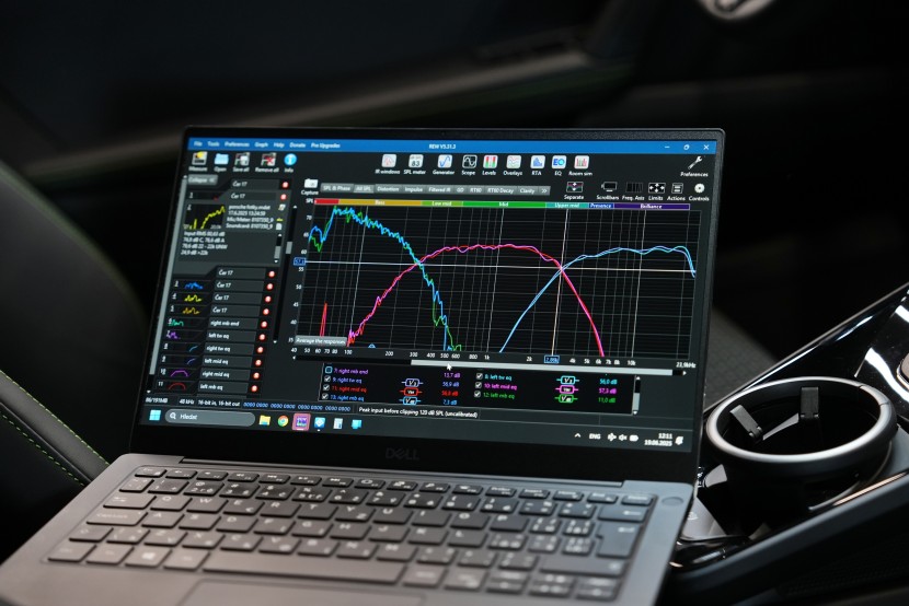 To nejdůležitější se odehrává na konci instalace a to měření frekvenční odezvy reproduktorů s následným nastavením zvuku v softwaru DSP procesoru. Automobil není z hlediska akustiky zrovna optimálním prostředím. Je tedy důležité korigovat nejen nevhodnou lokaci reproduktorů, ale také pozici posluchače a všechny překážky po cestě zvuku do lidského ucha. Výslednou ekvalizační křivku každého reproduktoru ovlivňuje spousta faktorů jako je prostor za reproduktorem, materiál membrány i koše reproduktoru, ale i překážky zvuku jako jsou sedačky, středový tunel, volant nebo palubní deska. Je tedy nezbytné změřit frekvenční odezvu každého reproduktoru a výsledky následně zapsat do programu DSP procesoru. K měření používáme kvalitní kalibrované mikrofony v kombinaci s profesionálním měřícím softwarem REW a jeho cílem je dosažení lineární frekvenční odezvy reproduktorů, což umožní i v tak akusticky náročném prostředí dosáhnout věrného a vysoce kvalitního zvuku.