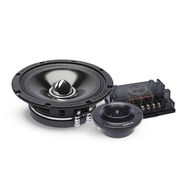 | Typ reproduktorůKoaxiální reproduktory: Koaxiální reproduktory se vyznačují konstrukcí tzv. vše v jednom. Výškový a středobasový reproduktor jsou v jednom koši. Výhodou je jednodušší montáž, ale díky spojení resp. blízkosti pásem v jednom reproduktoru, se obvykle sníží kvalita zvuku. Zpravidla uprostřed středobasového reproduktoru, je výškový reproduktor, jehož kmitací cívka pracuje ve druhé vzduchové mezeře společného magnatického obvodu. Třípásmový koaxiální reproduktor se skládá ze středobasového reproduktoru, ve předu na zvláštním nosníku je středový reproduktor a samostatný výškový. Komponentní reproduktory: Komponentní reproduktory se vyznačují rozdělením na jednotlivá frekvenční pásma, výškové + středobasové + popř. basové pásmo. Jednotlivé reproduktory se dají umístit zcela odděleně, což má za výsledek lepší zvukový i akustický projev. V drtivé většině případů komponentních reproduktorů je dodávaná i externí výhybka, která rozděluje výškové, středové / středobasové a u třípásma i basové pásmo popř. umožňuje nastavení decibelové úrovně u výškového reproduktoru (např. +2 dB, 0 dB, -2 dB), strmosti (např. 6dB/Okt. 12dB/Okt.) či aktivní nebo bi-amp zapojení. | Komponentní 2pásmové |