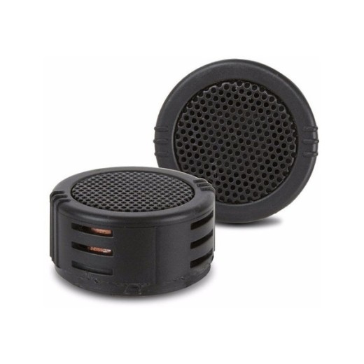| Typ reproduktorůKoaxiální reproduktory: Koaxiální reproduktory se vyznačují konstrukcí tzv. vše v jednom. Výškový a středobasový reproduktor jsou v jednom koši. Výhodou je jednodušší montáž, ale díky spojení resp. blízkosti pásem v jednom reproduktoru, se obvykle sníží kvalita zvuku. Zpravidla uprostřed středobasového reproduktoru, je výškový reproduktor, jehož kmitací cívka pracuje ve druhé vzduchové mezeře společného magnatického obvodu. Třípásmový koaxiální reproduktor se skládá ze středobasového reproduktoru, ve předu na zvláštním nosníku je středový reproduktor a samostatný výškový. Komponentní reproduktory: Komponentní reproduktory se vyznačují rozdělením na jednotlivá frekvenční pásma, výškové + středobasové + popř. basové pásmo. Jednotlivé reproduktory se dají umístit zcela odděleně, což má za výsledek lepší zvukový i akustický projev. V drtivé většině případů komponentních reproduktorů je dodávaná i externí výhybka, která rozděluje výškové, středové / středobasové a u třípásma i basové pásmo popř. umožňuje nastavení decibelové úrovně u výškového reproduktoru (např. +2 dB, 0 dB, -2 dB), strmosti (např. 6dB/Okt. 12dB/Okt.) či aktivní nebo bi-amp zapojení. | Výškové |