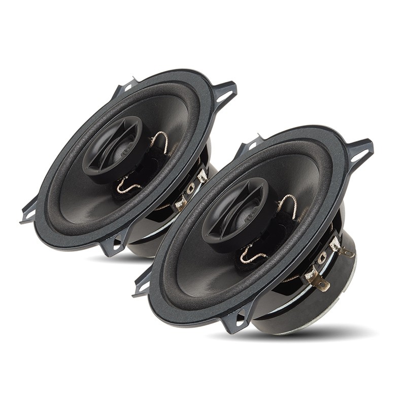 | Typ reproduktorůKoaxiální reproduktory: Koaxiální reproduktory se vyznačují konstrukcí tzv. vše v jednom. Výškový a středobasový reproduktor jsou v jednom koši. Výhodou je jednodušší montáž, ale díky spojení resp. blízkosti pásem v jednom reproduktoru, se obvykle sníží kvalita zvuku. Zpravidla uprostřed středobasového reproduktoru, je výškový reproduktor, jehož kmitací cívka pracuje ve druhé vzduchové mezeře společného magnatického obvodu. Třípásmový koaxiální reproduktor se skládá ze středobasového reproduktoru, ve předu na zvláštním nosníku je středový reproduktor a samostatný výškový. Komponentní reproduktory: Komponentní reproduktory se vyznačují rozdělením na jednotlivá frekvenční pásma, výškové + středobasové + popř. basové pásmo. Jednotlivé reproduktory se dají umístit zcela odděleně, což má za výsledek lepší zvukový i akustický projev. V drtivé většině případů komponentních reproduktorů je dodávaná i externí výhybka, která rozděluje výškové, středové / středobasové a u třípásma i basové pásmo popř. umožňuje nastavení decibelové úrovně u výškového reproduktoru (např. +2 dB, 0 dB, -2 dB), strmosti (např. 6dB/Okt. 12dB/Okt.) či aktivní nebo bi-amp zapojení. | Koaxiální 2pásmové |