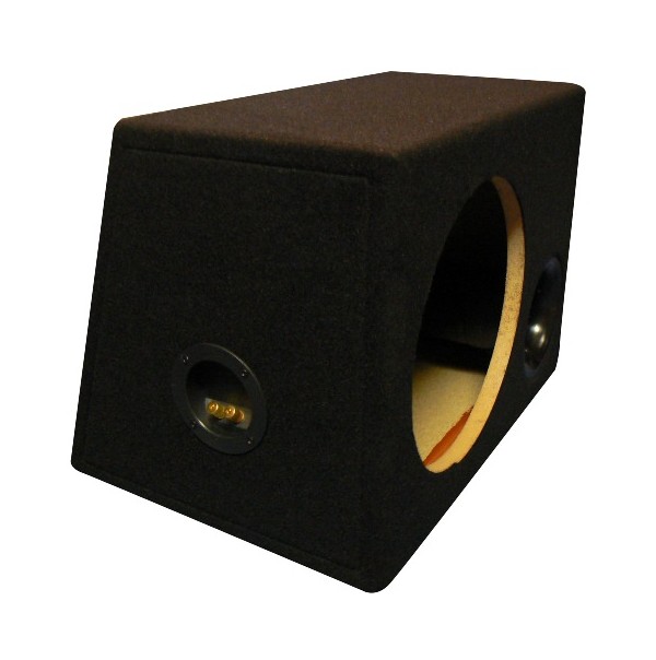 Ozvučnice je potažená černým kobercem, osazená nátrubkem, terminálem pro připojení a reproduktorovou dvoulinkou