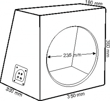 Třicetilitrová (21 l netto) ozvučnice pro 10" subwoofer. Uzavřená skříň. Je vyrobena z 19mm MDF desky a osazena 4pólovým připojovacím terminálem. Rozměry (š x v x h) 35 x 36 x 30/18 cm. Výřez otvoru je 23,5 cm.