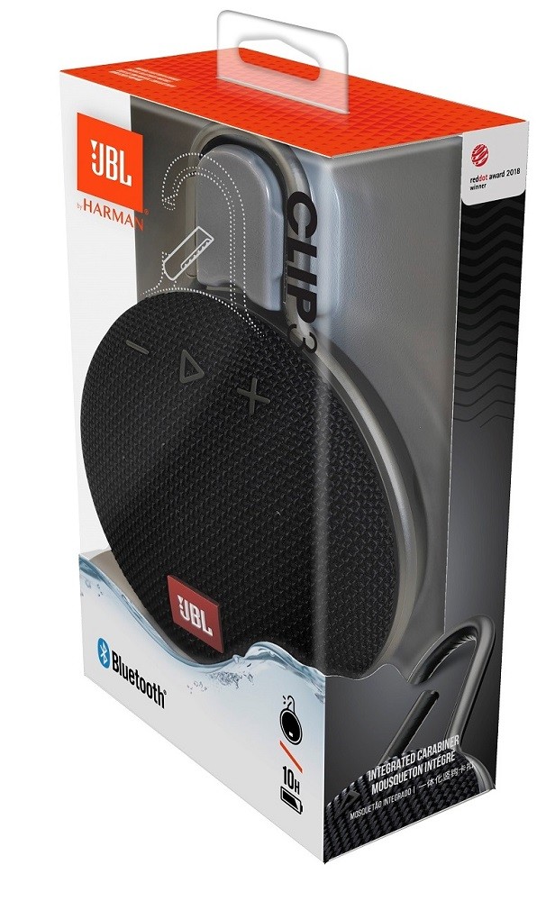 Připněte a přehrávejte. Jako žádný jiný, je JBL Clip 3 jedinečný, ultra přenosný, odolný a vodotěsný bluetooth reproduktor, který je sice malý, ale má překvapivě velký výkon. Vylepšená odolnost a plně integrovaná karabina pro zavěšení na vaše oblečení, poutko na opasek nebo na batoh, dělají z JBL Clip 3 vašeho outdoorového společníka při každém dobrodružství. Reproduktor Clip 3 má IPX7 a poskytuje 10 hodin přehrávání, protože je napájen 1000 mAh Li-ion baterií, díky čemuž si můžete vzít svou hudbu s sebou i na dlouhé cesty. Vestavěný reproduktor s mikrofonem potlačující šum a ozvěny vám poskytuje křišťálově čisté hovory, které přijmete stisknutím jednoho tlačítka.
