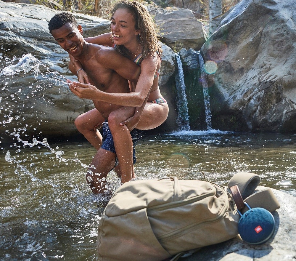 Už se nemusíte obávat deště nebo polití. JBL Clip 3 můžete dokonce ponořit do vody.Integrovaná karabina