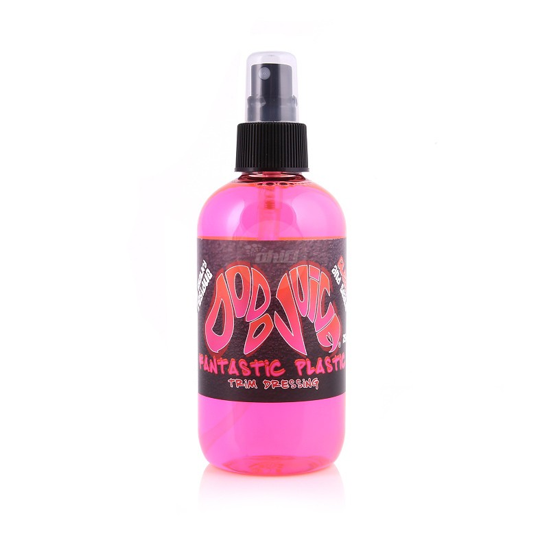 Dodo Juice Fantastic Plastic oživuje a obnovuje interiérové i exteriérové plasty. Zanechává povrch suchý, nelepivý a s přirozeným vzhledem. Po nanesení je povrch mírně lesklý, pokud chcete dosáhnout matnějšího efektu, rozleštěte povrch mikrovláknovou utěrkou. Efekt vydrží i několik měsíců, balení 250 ml vám tedy vystačí na dlouhou dobu. Plasty chrání před UV zářením a vyblednutím, mírně odpuzuje nečistoty a navíc skvěle voní po višních.