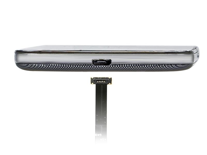 Krátká strana konektoru micro USB je dolů! Zkontrolujte polohu instalace portu micro-USB v telefonu. (viz obrázky). Modul přijímače je ultra tenký a dobře se zapojuje mezi ochranné pouzdro a baterii.