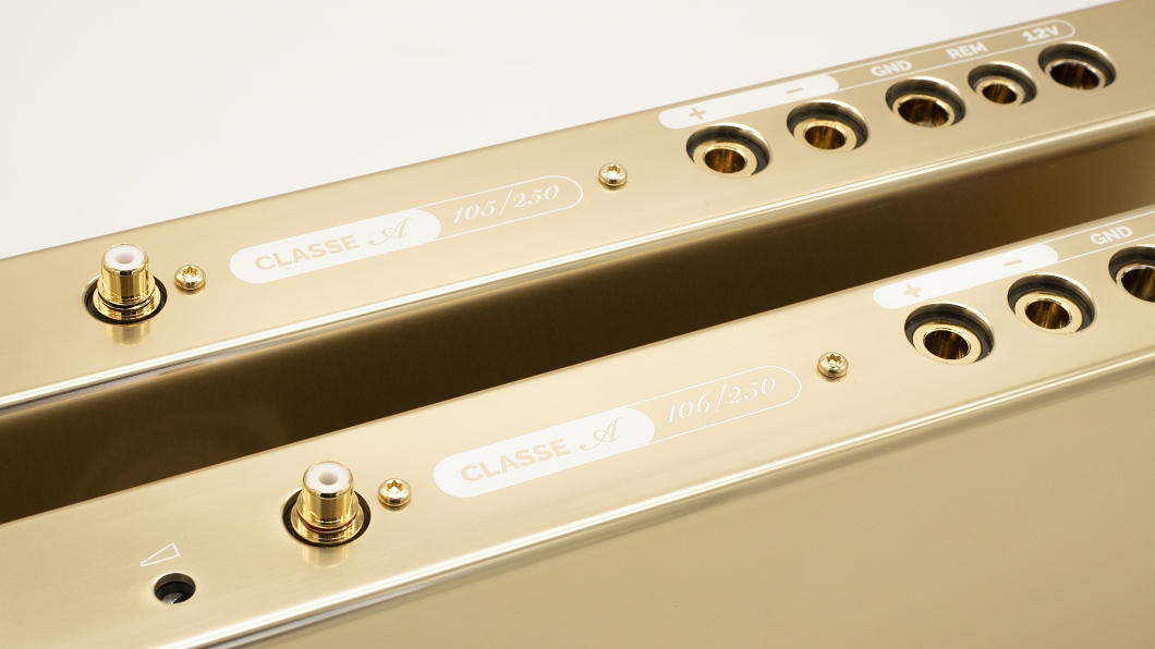 - Pozlacené mosazné bloky konektorů a nízkoúrovňové RCA vstupy.