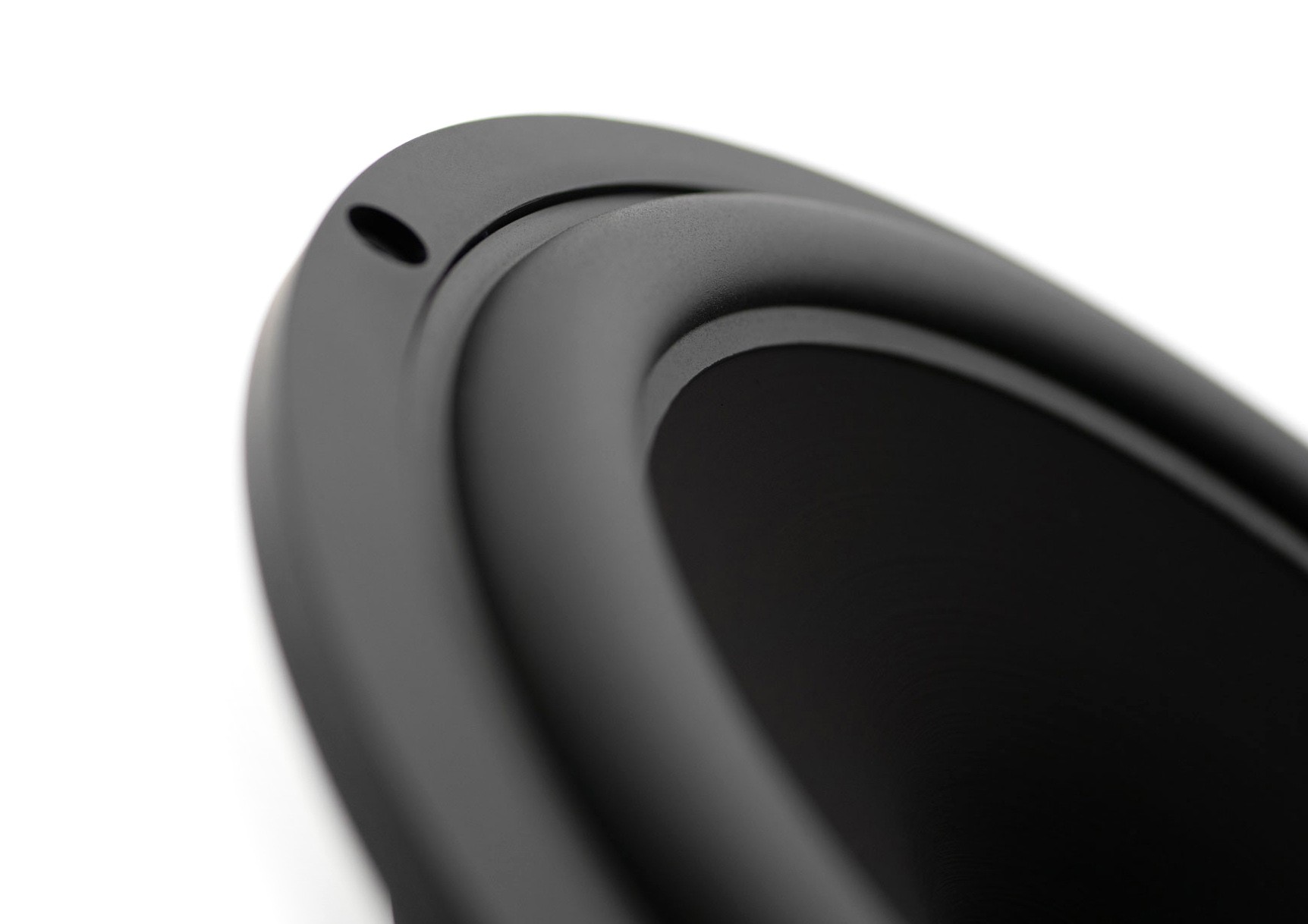 Quartorigo Fantasia Woofer je měnič, který na první pohled působí jako precizně navržený technický objekt s výraznou osobností. Temně černá membrána s hluboce konkávním profilem okamžitě upoutá pozornost a jasně naznačuje, že zde není prostor pro kompromisy. Tento tvar není pouze estetickým prvkem, ale přímým důsledkem akustického návrhu zaměřeného na maximální kontrolu, stabilitu a energii v basovém pásmu. Fantasia Woofer vizuálně i technicky reprezentuje filozofii řady Fantasia – sílu, koncentraci a absolutní kontrolu nad zvukem.