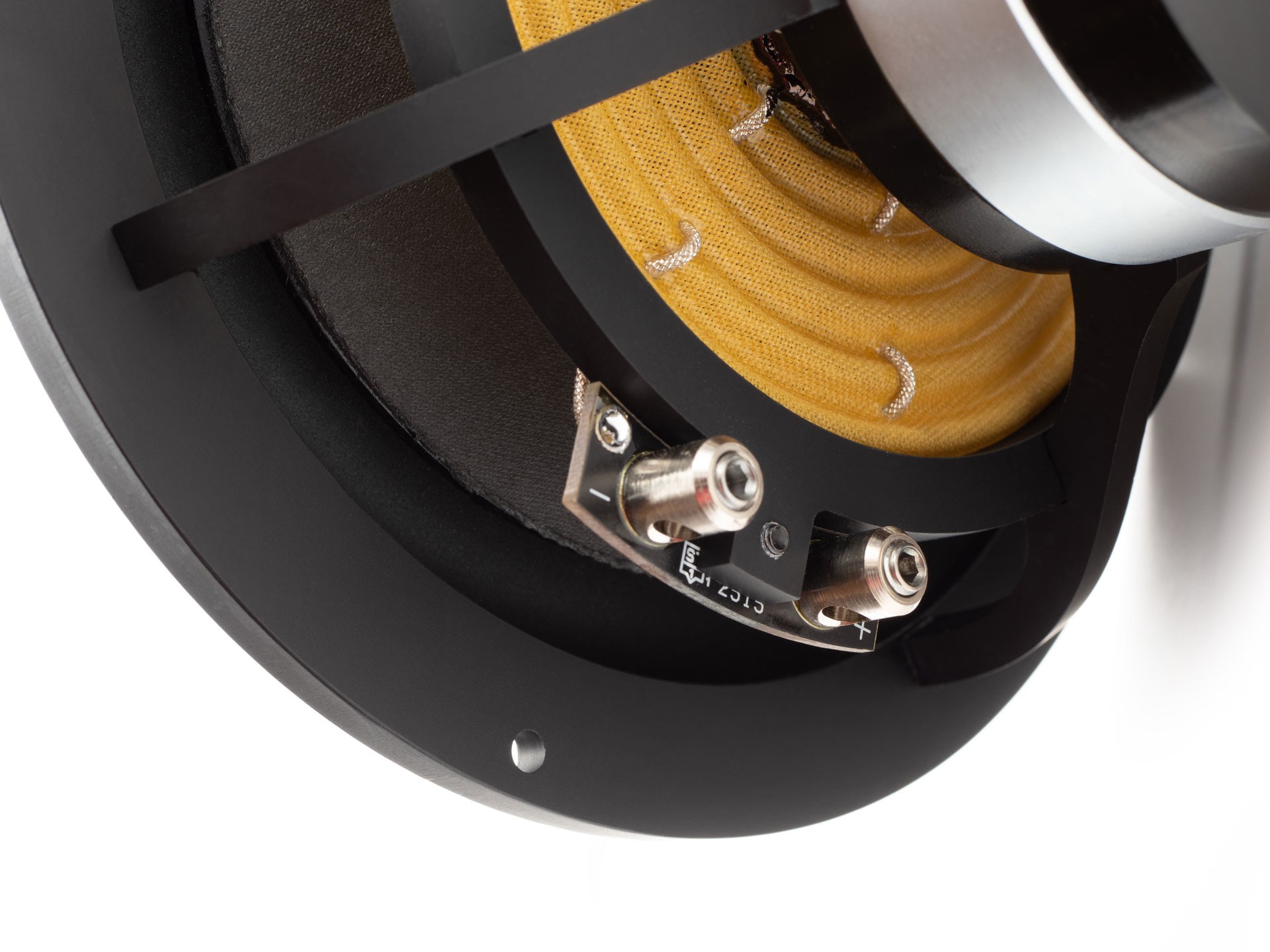 Konstrukce koše reproduktoru byla navržena v minimalistickém duchu s maximálním důrazem na proudění vzduchu. Otevřený design výrazně zlepšuje airflow v oblasti magnetického systému a kmitací cívky, čímž se snižuje turbulence i zpětný tlak vznikající při větších výchylkách membrány. Efektivnější chlazení a volnější proudění vzduchu přispívají k nižšímu zkreslení, vyšší stabilitě při dlouhodobé zátěži a celkově lepšímu projevu v nízkých frekvencích. Fantasia Woofer tak nepůsobí jako klasický středobasový reproduktor, ale spíše jako precizní nástroj pro formování fundamentu hudby. Je rychlý, silný a kultivovaný, s jasně čitelnou strukturou basu a přirozenou návazností na středové pásmo. V kombinaci s ostatními měniči řady Fantasia vytváří soudržný celek, kde každý tón má svou váhu, tvar i směr.