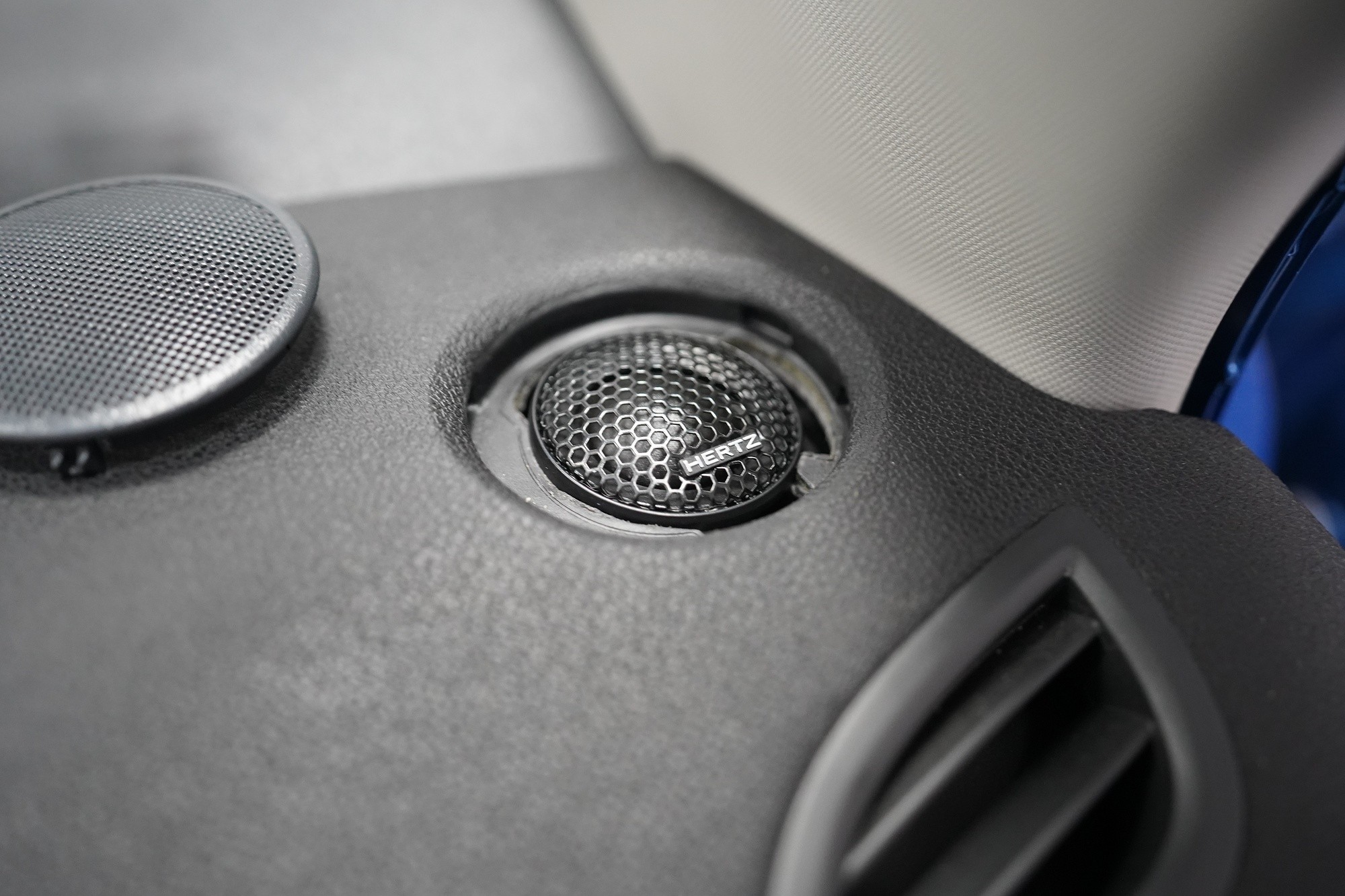 Do předních dveří tohoto krásného vozu jsme vybrali komponentní reproduktory Hertz z nejvyšší řady Mille, které nejen že vynikají velmi příjemným zvukem, ale i dostatečným výkonem i při zapojení na tovární autorádio. Je to dáno až extrémní citlivostí těchto reproduktorů i sníženou impedancí na 3 Ohmy. Zadní dveře jsme osadili špičkovými koaxiálními reproduktory téhož výrobce.