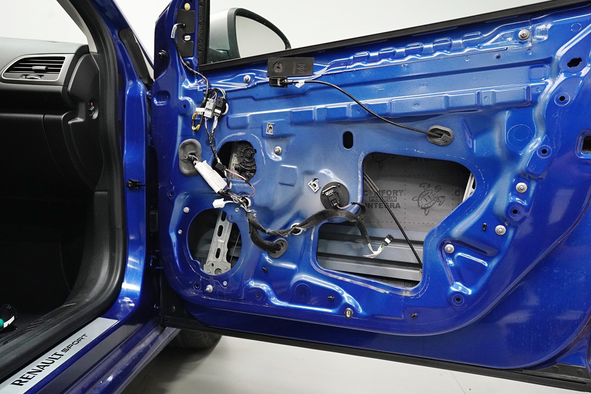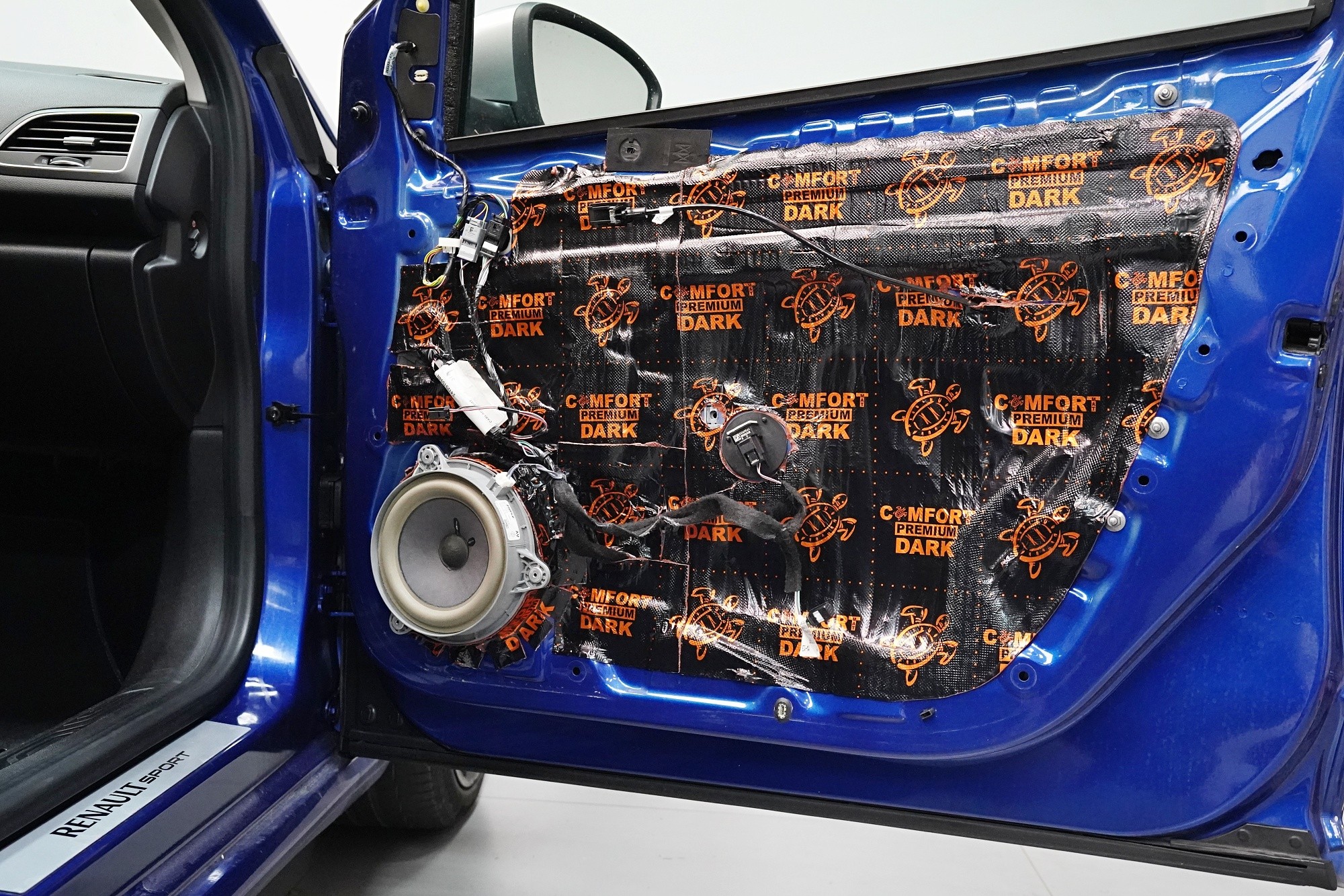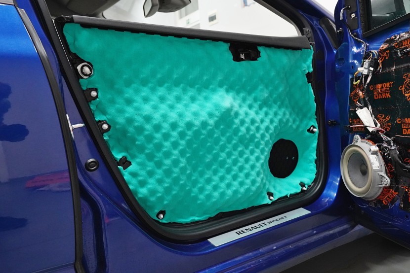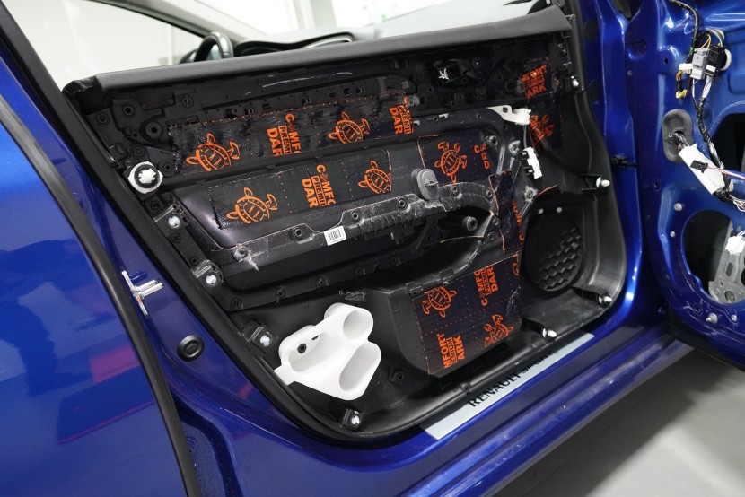 Následně aplikujeme opět odlehčený antivibrační materiál Comfortmat z prémiové řady Dark. Tato vrstva slouží k zamezení vibrací a rezonancí vnitřního plechu dveří a u většiny vozidel i k vytvoření uzavřené ozvučnice pro reproduktory, což má za následek zlepšení ozvučení. Zejména basová složka středobasového reproduktoru dozná podstatného zlepšení, což oceníte nejen u továrních reproduktorů.