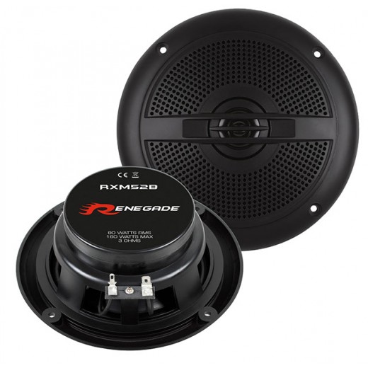 Vlhku odolné reproduktory Renegade RXM, které nabízí za nízkou cenu vysokou kvalitu zvuku, odolné zpracování a výdrž díky poctivé konstrukci. Reproduktory Renegade RXM jsou vhodné jako reproduktory na lodě, do koupelny, na záchody do restaurací, na venkovní terasy, pro zahradní restaurace, altánky atd. Jsou odolné proti stříkající vodě a z tohoto důvodu mají koš z tvrzeného plastu (zbarvení koše je elegantní černé -> neutrální a nerušivé). Vestavěný výškový reproduktor s mylarovou membránou má průměr 25 mm. V balení najdete 2 kusy reproduktorů.Hlavní vlastnosti