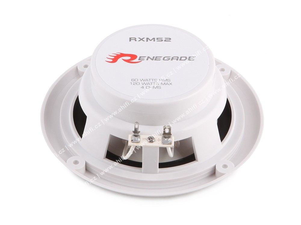 Vlhku odolné reproduktory Renegade RXM, které nabízí za nízkou cenu vysokou kvalitu zvuku, odolné zpracování a výdrž díky poctivé konstrukci. Reproduktory Renegade RXM jsou vhodné jako reproduktory na lodě, do koupelny, na záchody do restaurací, na venkovní terasy, pro zahradní restaurace, altánky atd. Jsou odolné proti stříkající vodě a z tohoto důvodu mají koš z tvrzeného plastu (zbarvení koše je elegantní bílé -> neutrální a nerušivé). Vestavěný výškový reproduktor s mylarovou membránou má průměr 25 mm. V balení najdete 2 kusy reproduktorů.Hlavní vlastnosti