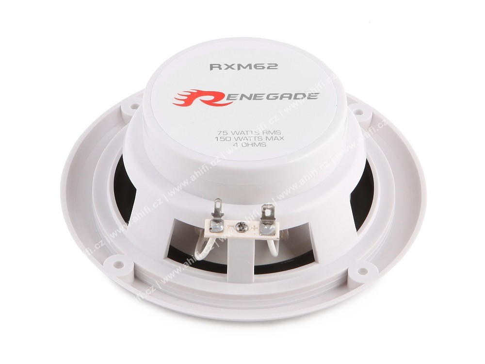 Vlhku odolné reproduktory Renegade RXM, které nabízí za nízkou cenu vysokou kvalitu zvuku, odolné zpracování a výdrž díky poctivé konstrukci. Reproduktory Renegade RXM jsou vhodné jako reproduktory na lodě, do koupelny, na záchody do restaurací, na venkovní terasy, pro zahradní restaurace, altánky atd. Jsou odolné proti stříkající vodě a z tohoto důvodu mají koš z tvrzeného plastu (zbarvení koše je elegantní bílé -> neutrální a nerušivé). Vestavěný výškový reproduktor s mylarovou membránou má průměr 25 mm. V balení najdete 2 kusy reproduktorů.Hlavní vlastnosti