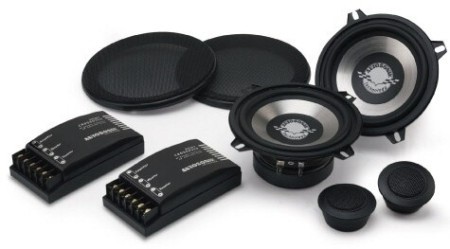 | Typ reproduktorůKoaxiální reproduktory: Koaxiální reproduktory se vyznačují konstrukcí tzv. vše v jednom. Výškový a středobasový reproduktor jsou v jednom koši. Výhodou je jednodušší montáž, ale díky spojení resp. blízkosti pásem v jednom reproduktoru, se obvykle sníží kvalita zvuku. Zpravidla uprostřed středobasového reproduktoru, je výškový reproduktor, jehož kmitací cívka pracuje ve druhé vzduchové mezeře společného magnatického obvodu. Třípásmový koaxiální reproduktor se skládá ze středobasového reproduktoru, ve předu na zvláštním nosníku je středový reproduktor a samostatný výškový. Komponentní reproduktory: Komponentní reproduktory se vyznačují rozdělením na jednotlivá frekvenční pásma, výškové + středobasové + popř. basové pásmo. Jednotlivé reproduktory se dají umístit zcela odděleně, což má za výsledek lepší zvukový i akustický projev. V drtivé většině případů komponentních reproduktorů je dodávaná i externí výhybka, která rozděluje výškové, středové / středobasové a u třípásma i basové pásmo popř. umožňuje nastavení decibelové úrovně u výškového reproduktoru (např. +2 dB, 0 dB, -2 dB), strmosti (např. 6dB/Okt. 12dB/Okt.) či aktivní nebo bi-amp zapojení. | komponentní 2 pásmové |