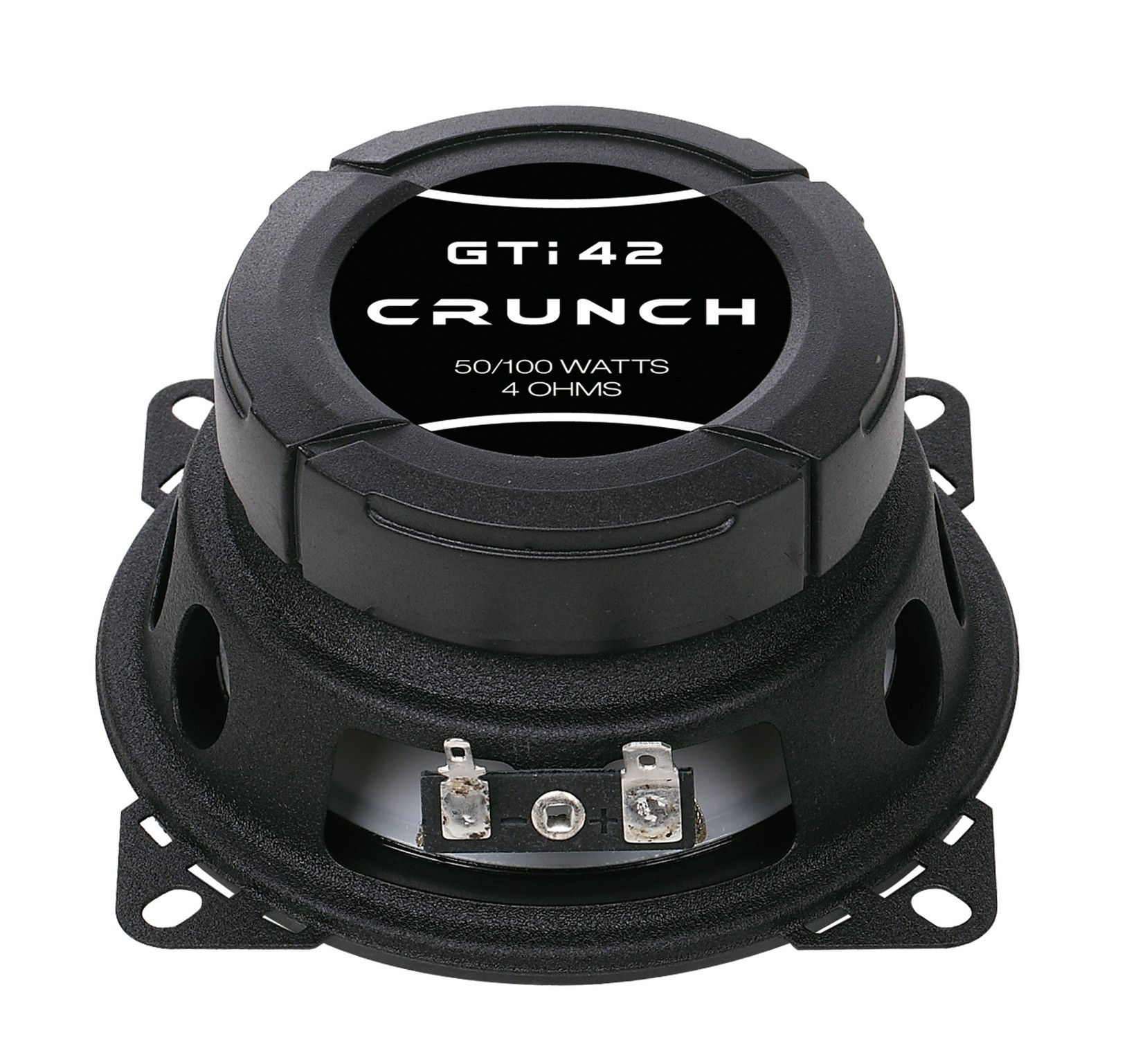 Koaxiální reproduktory řady Crunch GTI jsou navrženy jako cenově dostupné řešení pro základní upgrade ozvučení vozidla a vhodně doplňují zesilovače stejné značky. Série zaujme moderním vzhledem s bílými polypropylenovými membránami a designově řešenými krycími mřížkami, zároveň si zachovává jednoduchou a funkční konstrukci. Díky střední montážní hloubce jsou reproduktory použitelné i v běžných továrních pozicích bez nutnosti výraznějších úprav dveří. Základem jsou středobasové měniče s polypropylenovou membránou uložené ve stabilním ocelovém koši a doplněné o robustní magnetický kryt. O výšky se starají 13 mm mylarové výškové reproduktory s neodymovým magnetem.